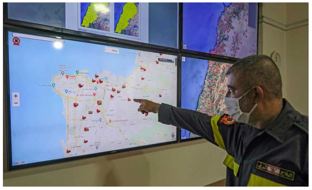 Volunteer at the Lebanese Civil Defence work in the the control room at the headquarters of the public emergency service in the capital Beirut, on Sept. 28, 2020. Photo by ANWAR AMRO/AFP via Getty Images