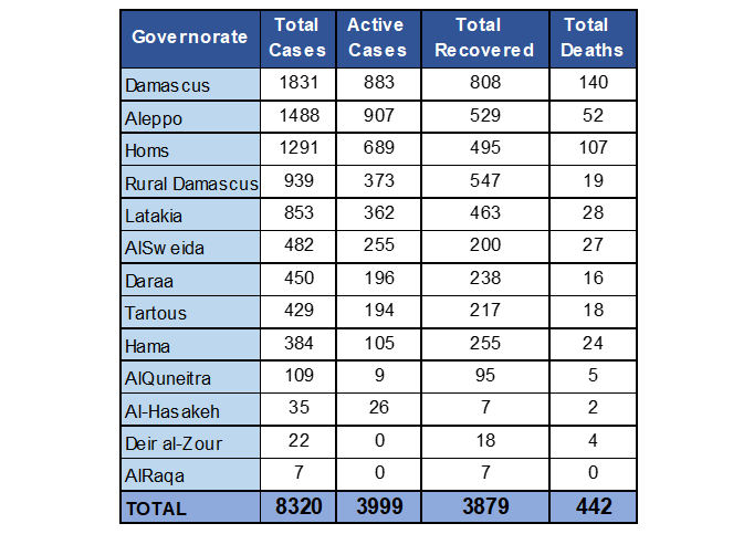 [8] OCHA, SYRIAN ARAB REPUBLIC: COVID-19 Humanitarian Update No. 21, As of 30 Nov 2020