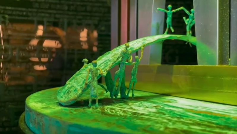 Volviendo a las exposiciones del pabellón, Marswanian señala que la escultura más llamativa es la que construye un puente, pero ¿qué representa? Lo explica: «es un puente que se extiende en los dos extremos, con un grupo de personas, en pequeñas figuras, que lo llevan, y en el centro, otro grupo de personas que se encuentran a mitad de camino. En la parte superior del puente hay tres cúpulas que simbolizan las tres religiones celestiales. La puerta más grande simboliza la puerta de la Expo de Dubai».