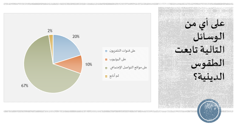According to the study, social media was the most used method for following religious celebrations (67%). According to Fr. Rifaat Bader, there are no religious television channels in Jordan, which caused a large number of believers to resort to social media platforms.