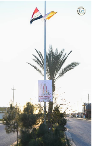 Of course, people will go out to the airport, and we have prepared special flags and hats for them that have the Pope's slogan "We are all brothers" with the map of Iraq, the 2 rivers and Iraq Al-Nakhil. The palm tree is like the cedar of Lebanon, this palm is strong and historic, with a dove holding an olive branch symbolizing the Pope, the Pope’s image and T-shirts and medals distributed to the people during the welcoming of the Pope.
