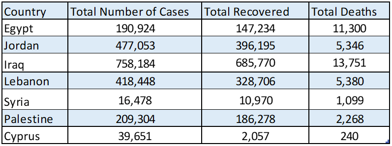 The Coronavirus COVID-19 situation in the Middle East