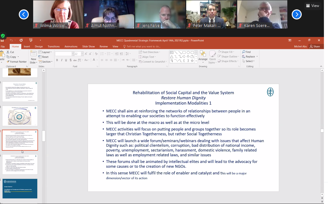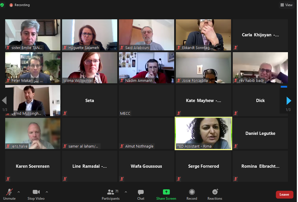 The next session involved a projection of three short films about MECC activities in Lebanon, Palestine and Syria during the year 2020 and the activities departments were able to achieve throughout this exceptional year. This session was moderated by Ms. Wilma Wolswinkel Manager of Kerk in Actie and Program Officer of the Protestant Church in the Netherlands.