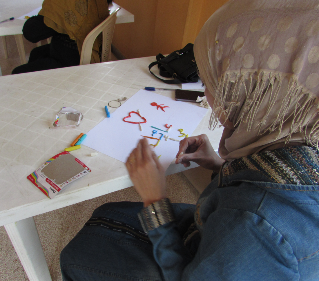 The sessions also contribute in empowering women and developing their skills to overcome the difficult circumstances surrounding them. As well as, the sessions help them build resilience and cope with their environment and societies. In fact, two levels of intervention are introduced: in large groups through art techniques and in smaller groups for those who have higher mental health needs.