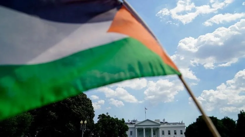 Activists wave a Palestinian flag outside the White House, photo credit: Aawsat.