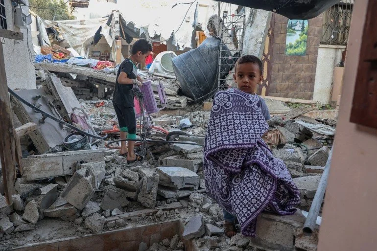 Palestinian children salvage their belongings from the rubble of their house in Gaza, which was destroyed during the latest three-day conflict with Israel [File: Said Khatib/AFP