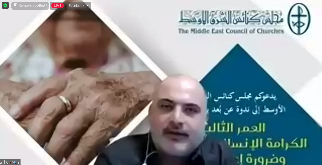 The Middle East Council of Churches is still holding the series of monthly webinars it has launched within the “Human Dignity Project” as part of the work of a department that is being developed in MECC under the name of “Dialogue and Social Cohesion-Social Capital Rehabilitation”. Hence, MECC convened its third webinar, entitled “Third Age: On Endangered Human Dignity and The Need for Reintegration”, on Thursday 29 September 2022, which was also broadcasted live on the MECC Facebook page.