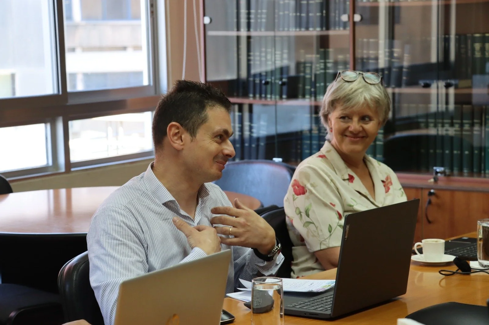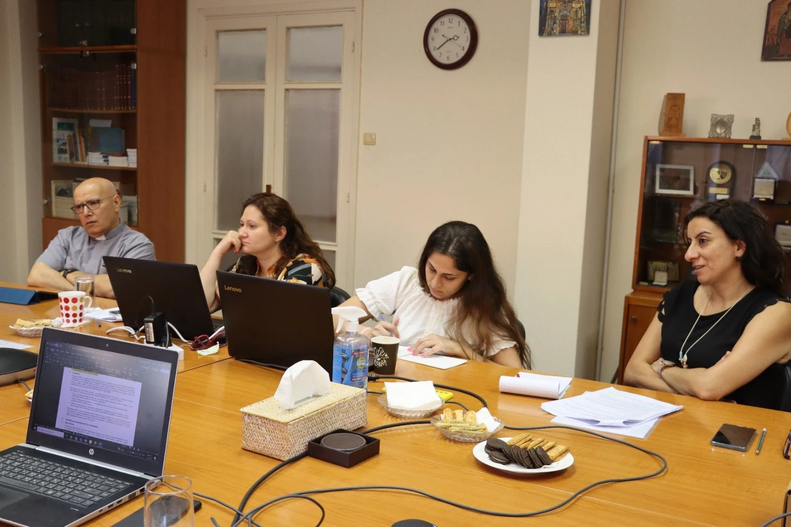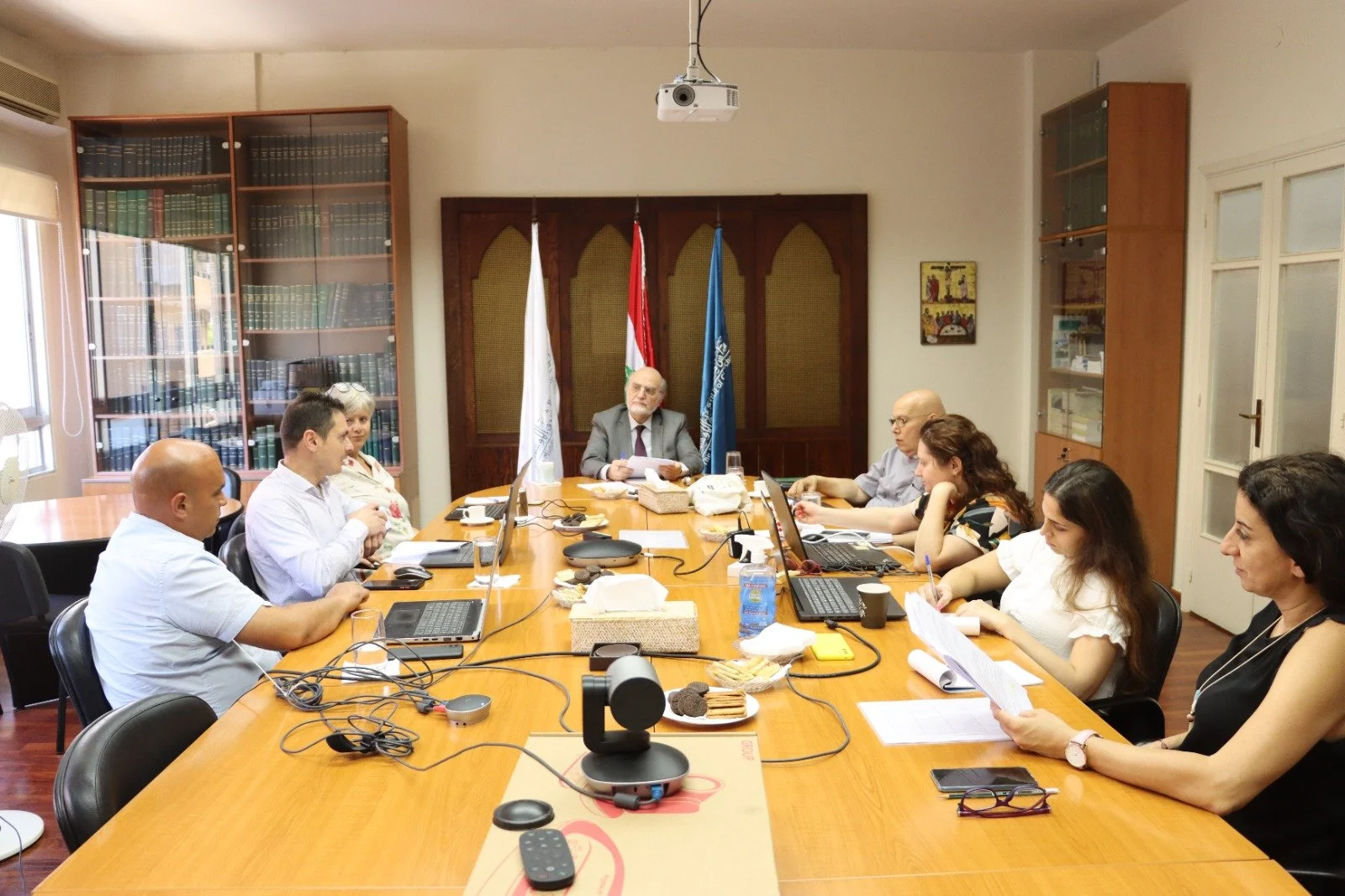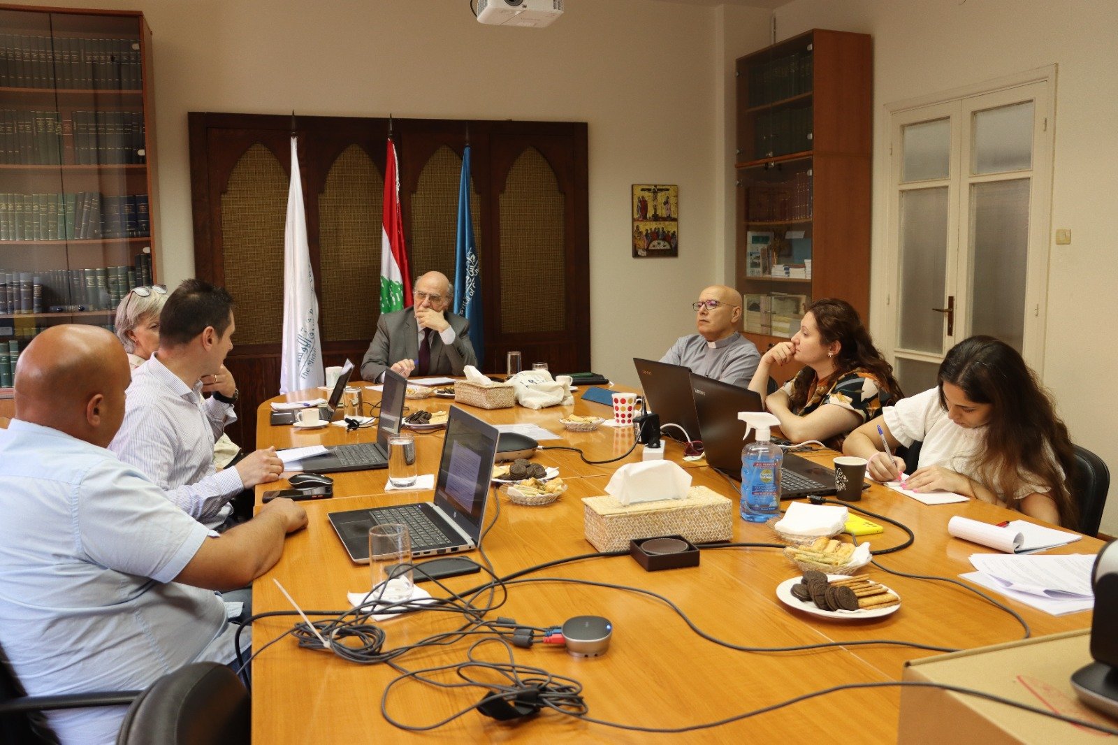 The delegation was received by the Secretary General of the Middle East Council of Churches Dr. Michel Abs, alongside an MECC team that included Father Dr. Antoine Al Ahmar, Director of the Theological and Ecumenical Department, Mrs. Manal Bechara Bou Habib, Financial Director, Ms. Laudy Khoury, Financial Coordinator, and Mrs. Roula Saliba, Senior Human Resources Officer.
