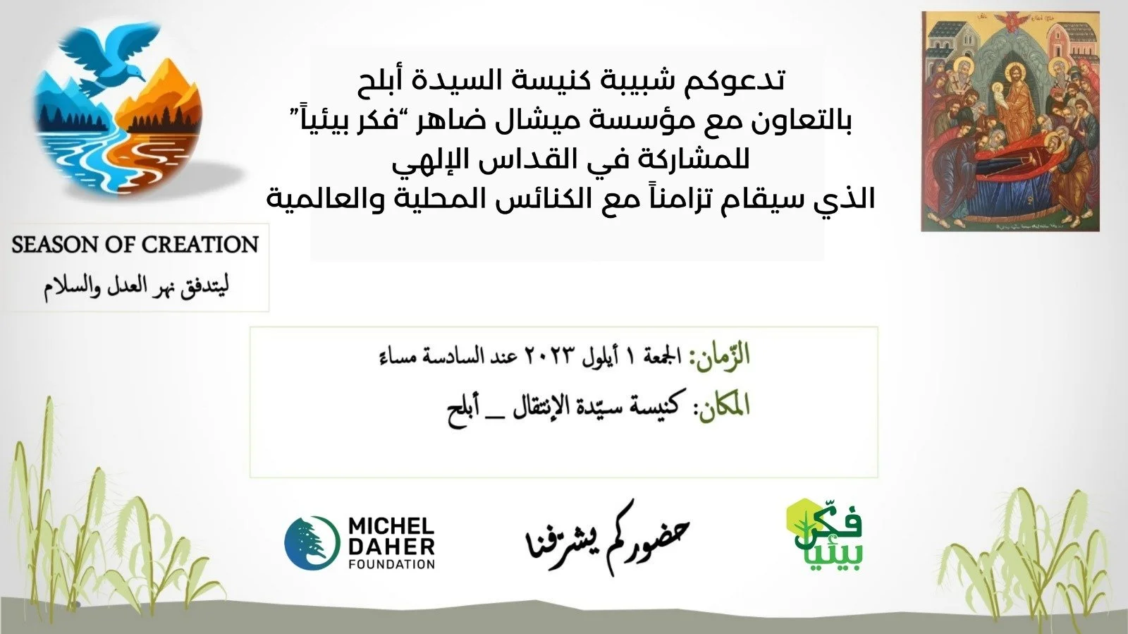 Hence, on the occasion of the “Season of Creation,” “Our Lady of Ebleh Youth” launched its work in the Bekaa Valley in cooperation with the “Think Environmentally” initiative, which has been active in the Bekaa for 5 years and is affiliated to Michel Daher Foundation. Therefore, this youth group organized a celebration on Friday 1 September 2023, which marks the beginning of the season. The celebration started with a Holy Mass celebrated by Father Fadi Al Fahal, in the presence of the President of Michel Daher Foundation Mrs. Marleine Daher, alongside a group of Monks and Nuns from the “Holy Savior Monastery” in Lebanon.