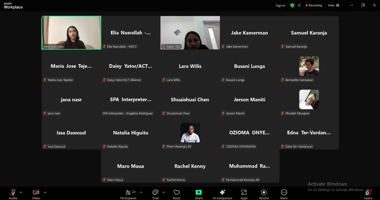 As part of following-up the coordination after the Youth Pre-Assembly and the Fourth General Assembly of the International ACT Alliance which took place in Indonesia, an online meeting was held with the youth who participated in these two assemblies, representing various international and regional organizations, including the Middle East Council of Churches (MECC), on Friday, December 6, 2024.