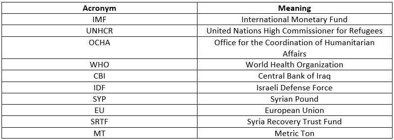 Although the situation remains grim, some positive developments have been noted. Syria and Iran signed a Memorandum of Understanding that included six cooperation agreements during the 15th meeting of the Syrian-Iranian Joint Higher Committee held in Tehran on December 9. The agreements are sought to foster deeper economic ties between the two. Moreover, the United Nations Industrial Development Organization initiated a USD 2.25 million project to revitalize Syrian agro-food businesses that Russia funds. In addition to that project, UNIDO is funding three other projects to help the Syrian government reduce the use of chemicals harming the ozone layer. Also, Syria's Minister of Electricity, Ghassan Al-Zamel, stated that the Cabinet approved a contract with a Chinese company to construct a large photovoltaic plant near Homs worth EUR 38.2 million. Another good news is the declaration of the government to restructure the public industrial sector, with several mergers under study by the government. On January 6, two entities were merged under a new General Company for the Manufacture and Marketing of Cement and Building Materials.