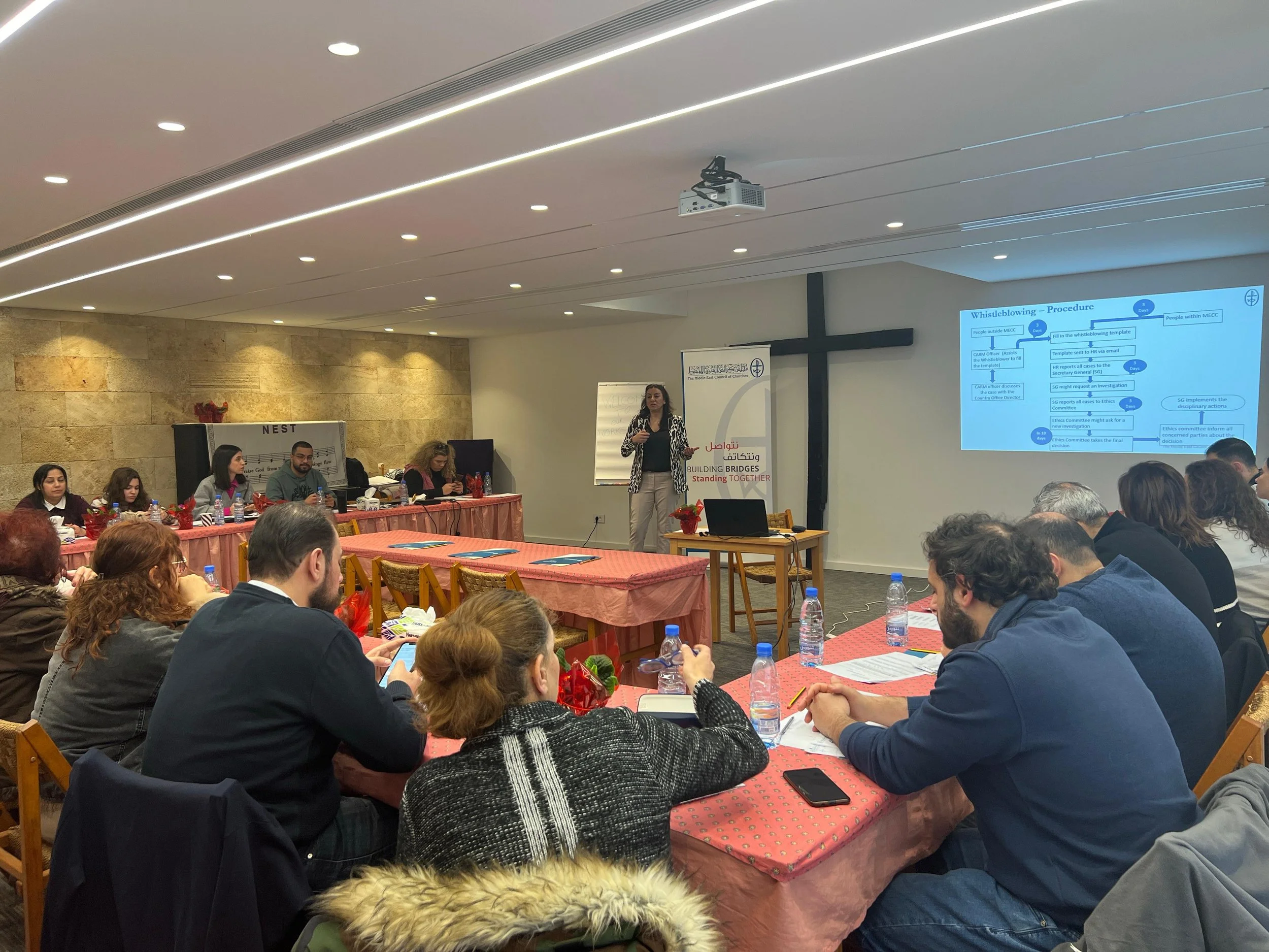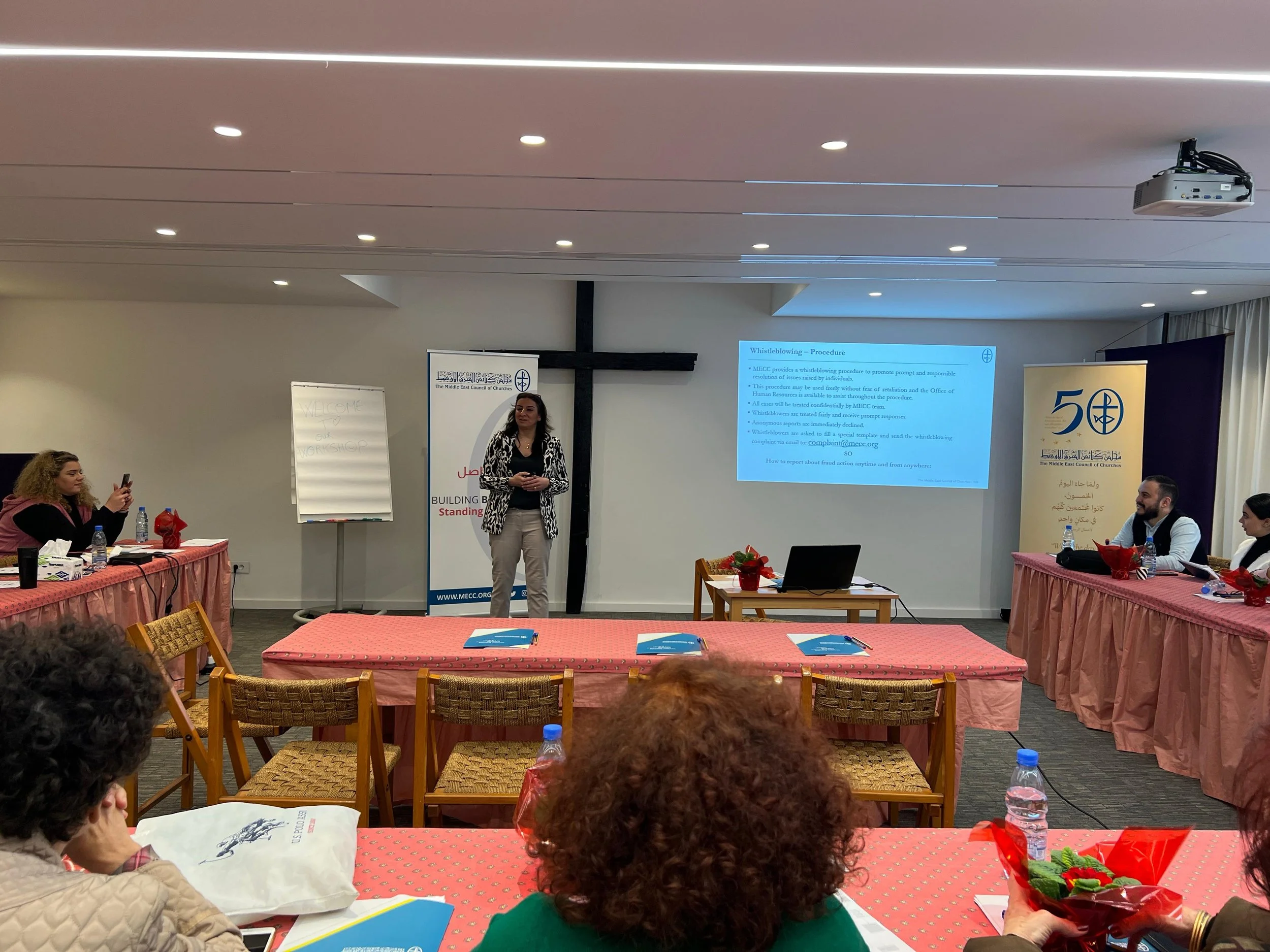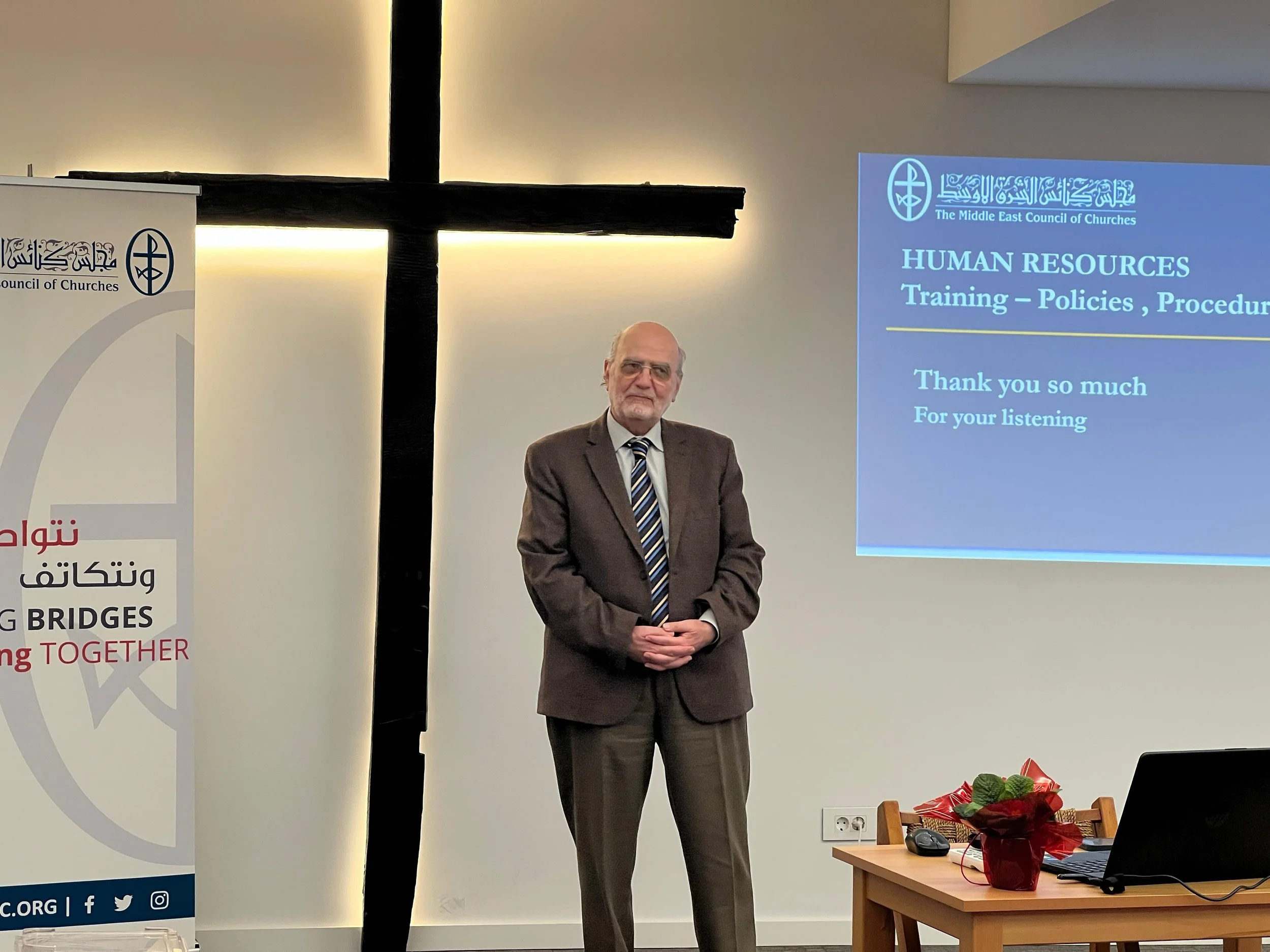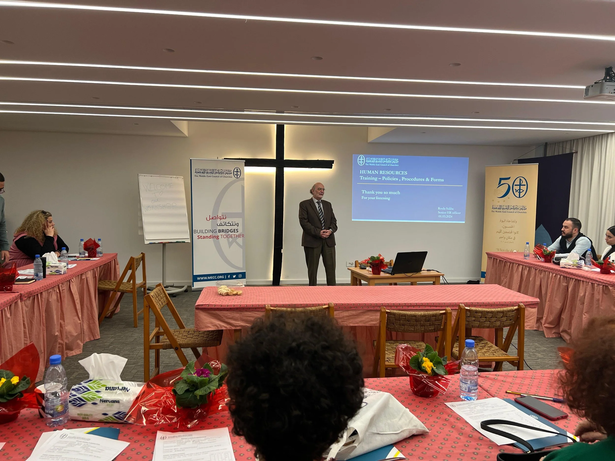 In this context, the Middle East Council of Churches organized a training on the new policies and procedures prepared and adopted by the Council with the aim of developing its work mechanisms. The training, which was programmed with the MECC Secretary General Dr. Michel Abs, extended over two days, Thursday 7 and Friday 8 March 2024, at the Near East School of Theology (NEST) in Beirut.