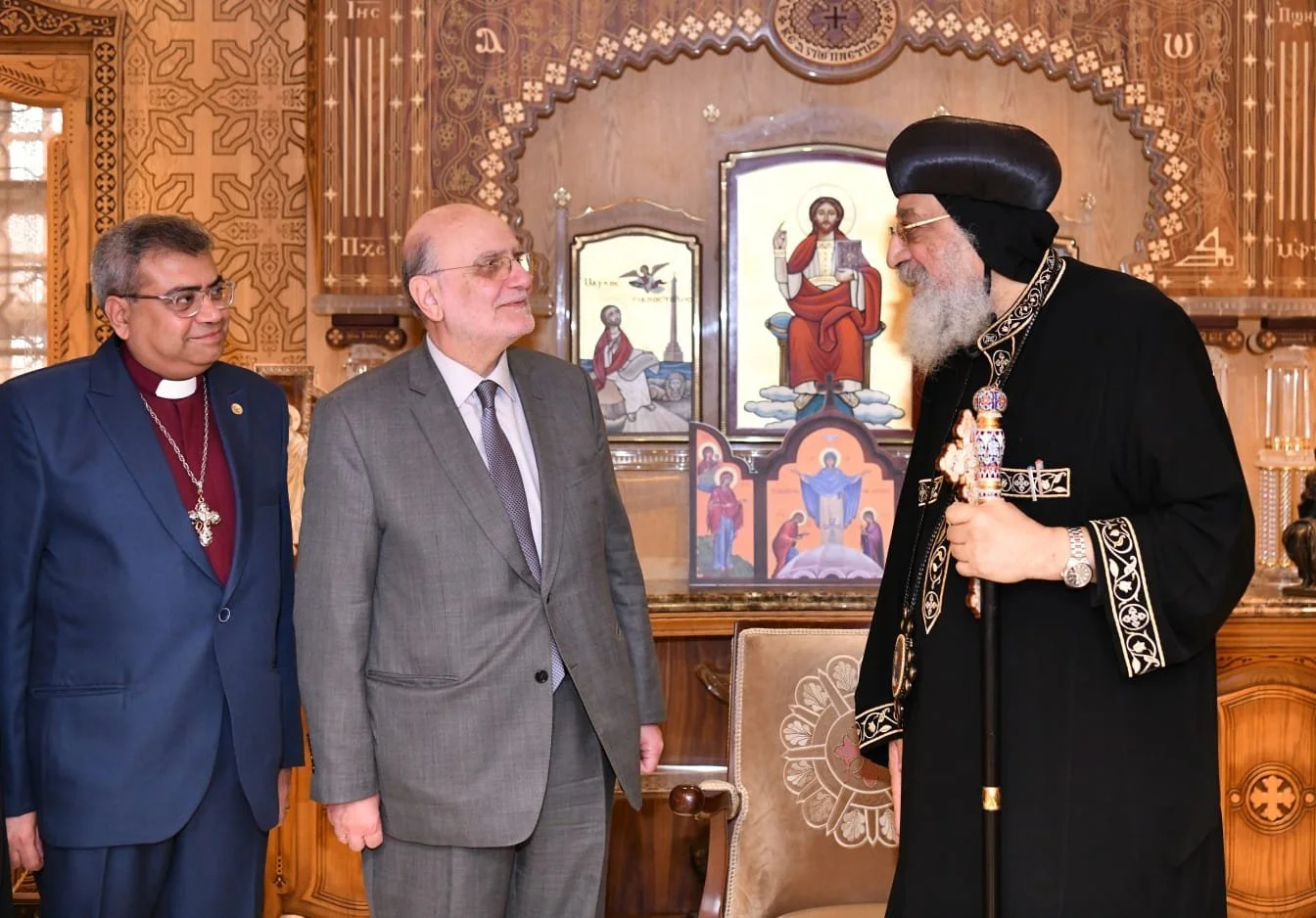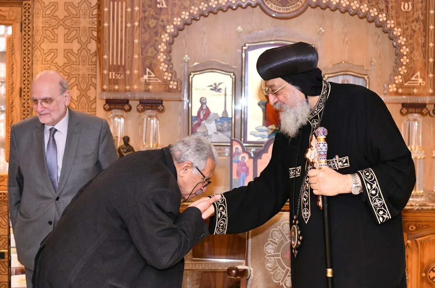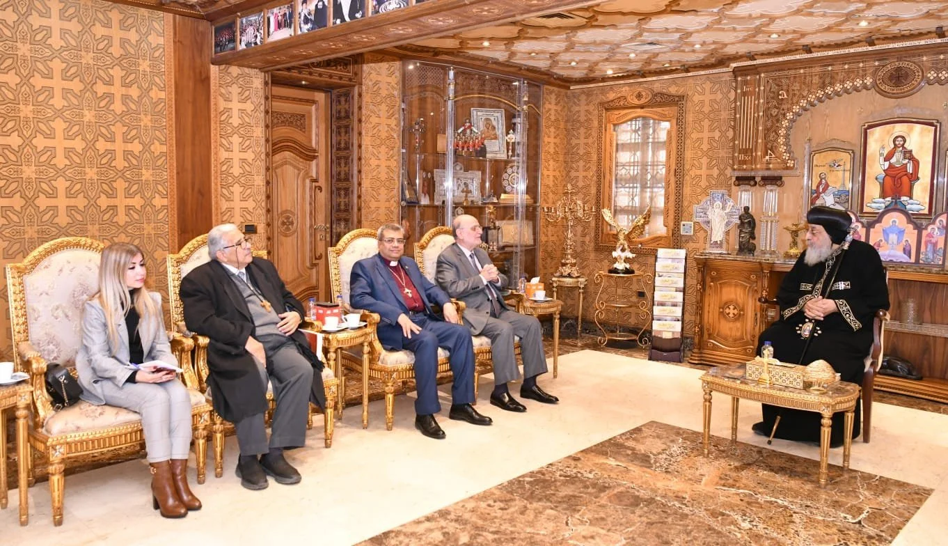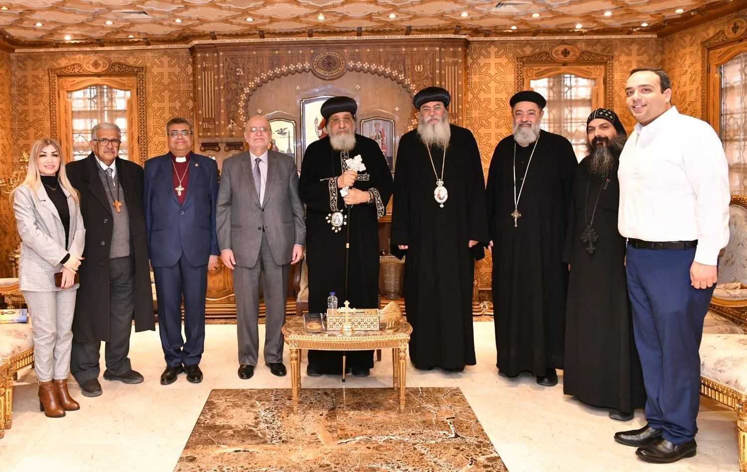 Over the course of an hour and a half, His Holiness Pope Tawadros II, Pope of Alexandria and Patriarch of the See of St. Mark, received the Secretary General of the Middle East Council of Churches (MECC) Dr. Michel Abs, and the Council delegation, at the Papal Residence - Abbasiya - Cairo.