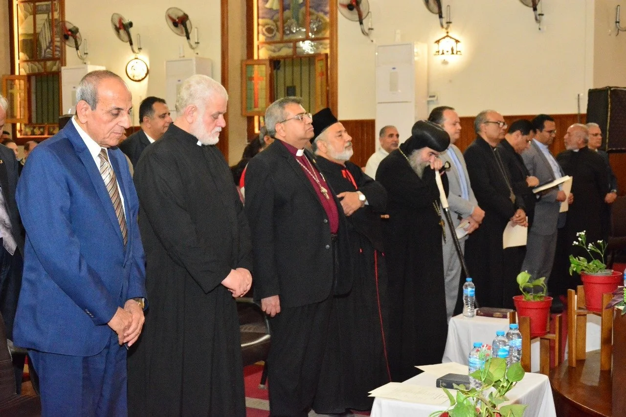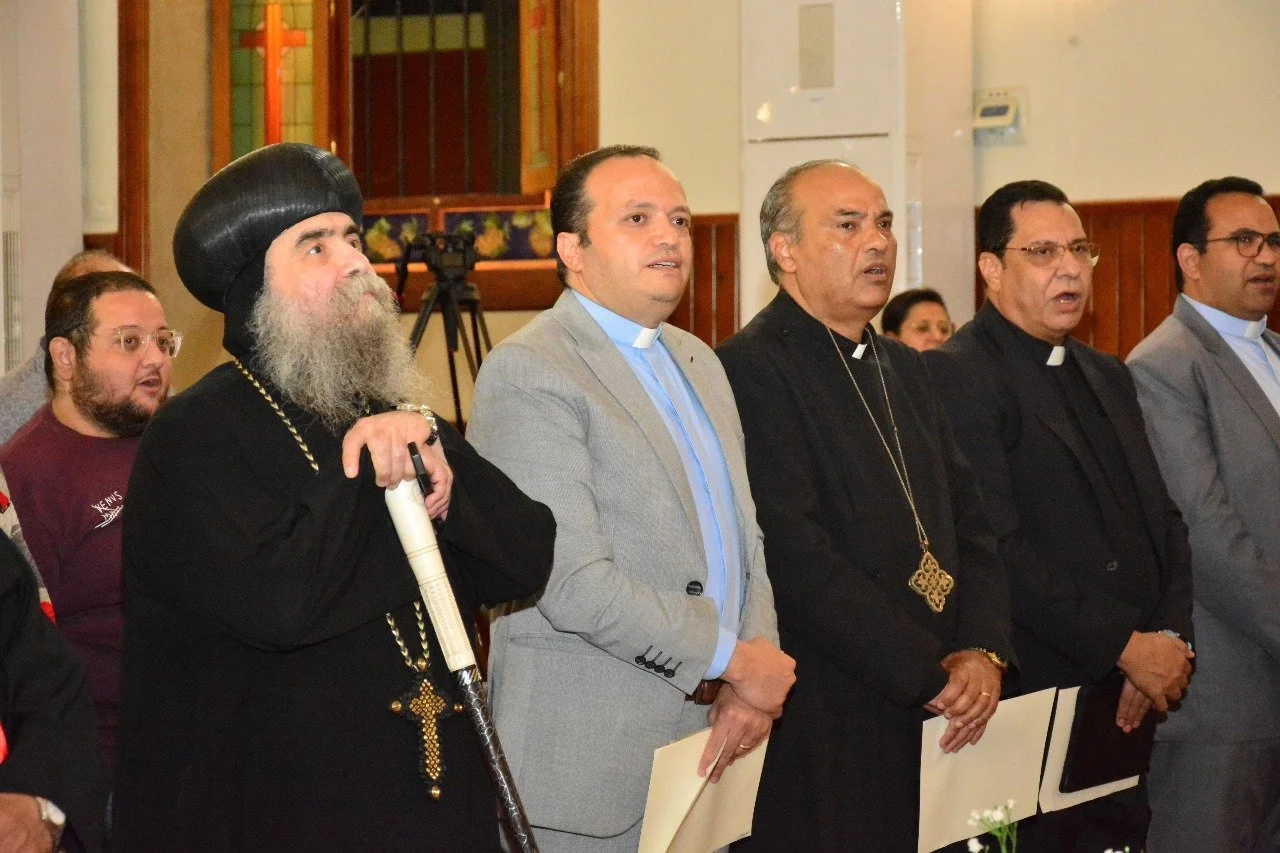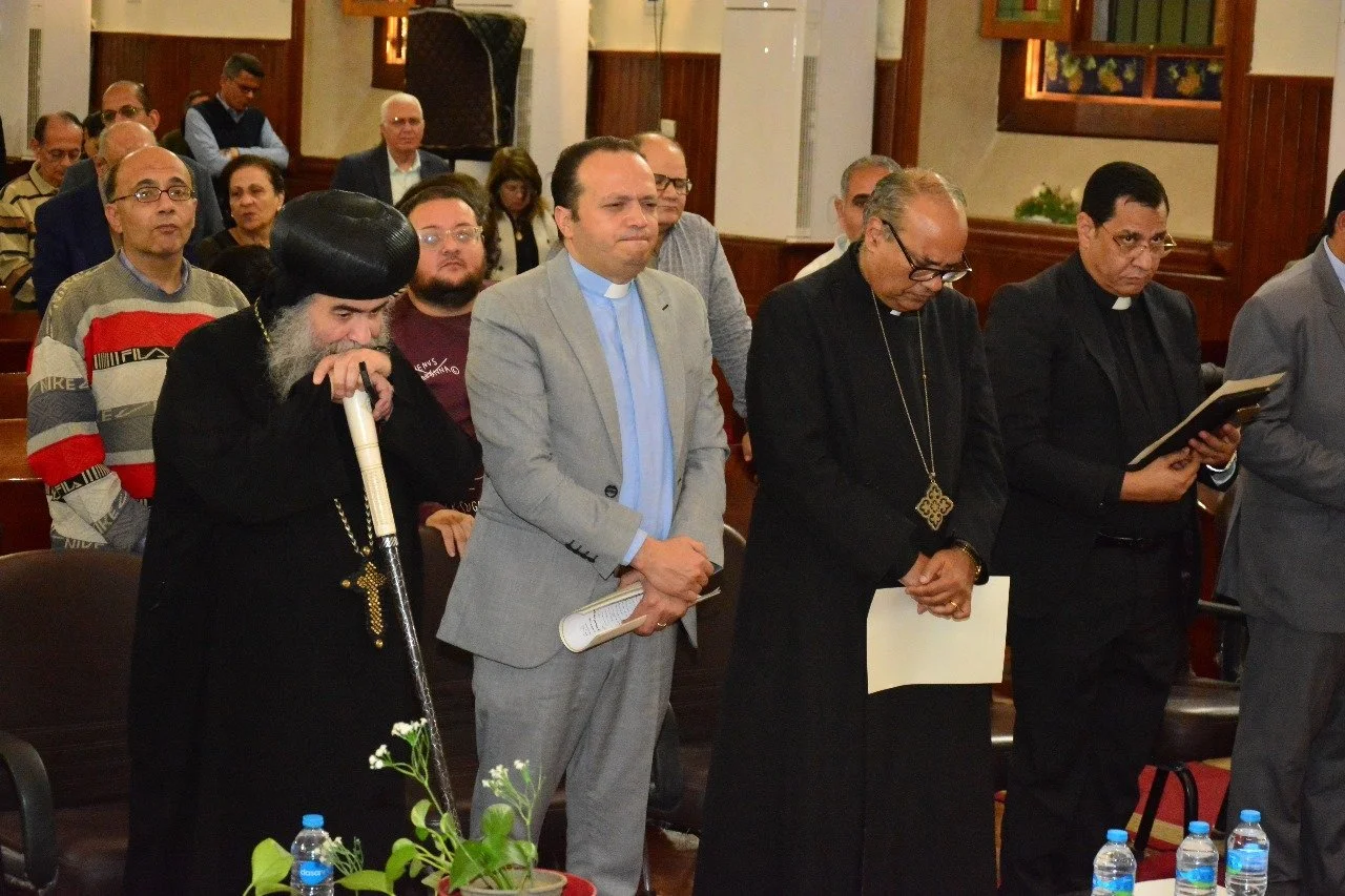 At the invitation of the Middle East Council of Churches (MECC) and in cooperation with the Egypt Council of Churches, the First Evangelical Church in New Assiut, under the patronage of Reverend Bassem Adly, the Church’s pastor, held a Prayer for unity, entitled “You shall love the Lord your God... and your neighbour as yourself” (Luke 10:27). Participants were a group of Church Leaders, His Eminence Bishop Youannes, the Coptic Orthodox Bishop of Assiut, Father Dr. Elia Francis, representing His Eminence Anba Daniel Lotfy, the Coptic Catholic Bishop of Assiut, and Priests.