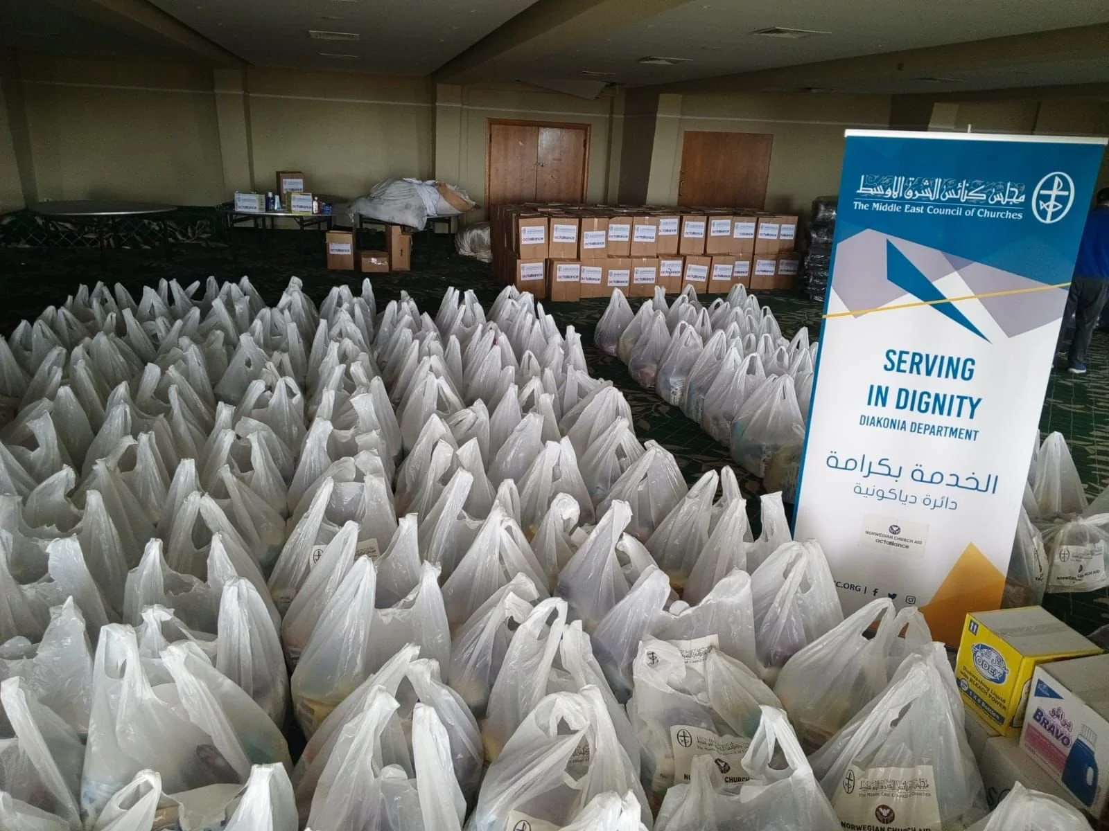 Hence, the Middle East Council of Churches (MECC) continues its relief work in the South of Lebanon with the aim of supporting the internally displaced people in various regions and shelter centers by providing in-kind assistance as well as psychological and social support. Thus, the MECC Diakonia and Social Service Department, Lebanon’s Office, implemented training courses for many displaced women on “self-care and services specialized in protecting women and children”. At the end of the courses, the participants received food and personal kits dedicated for women and children.