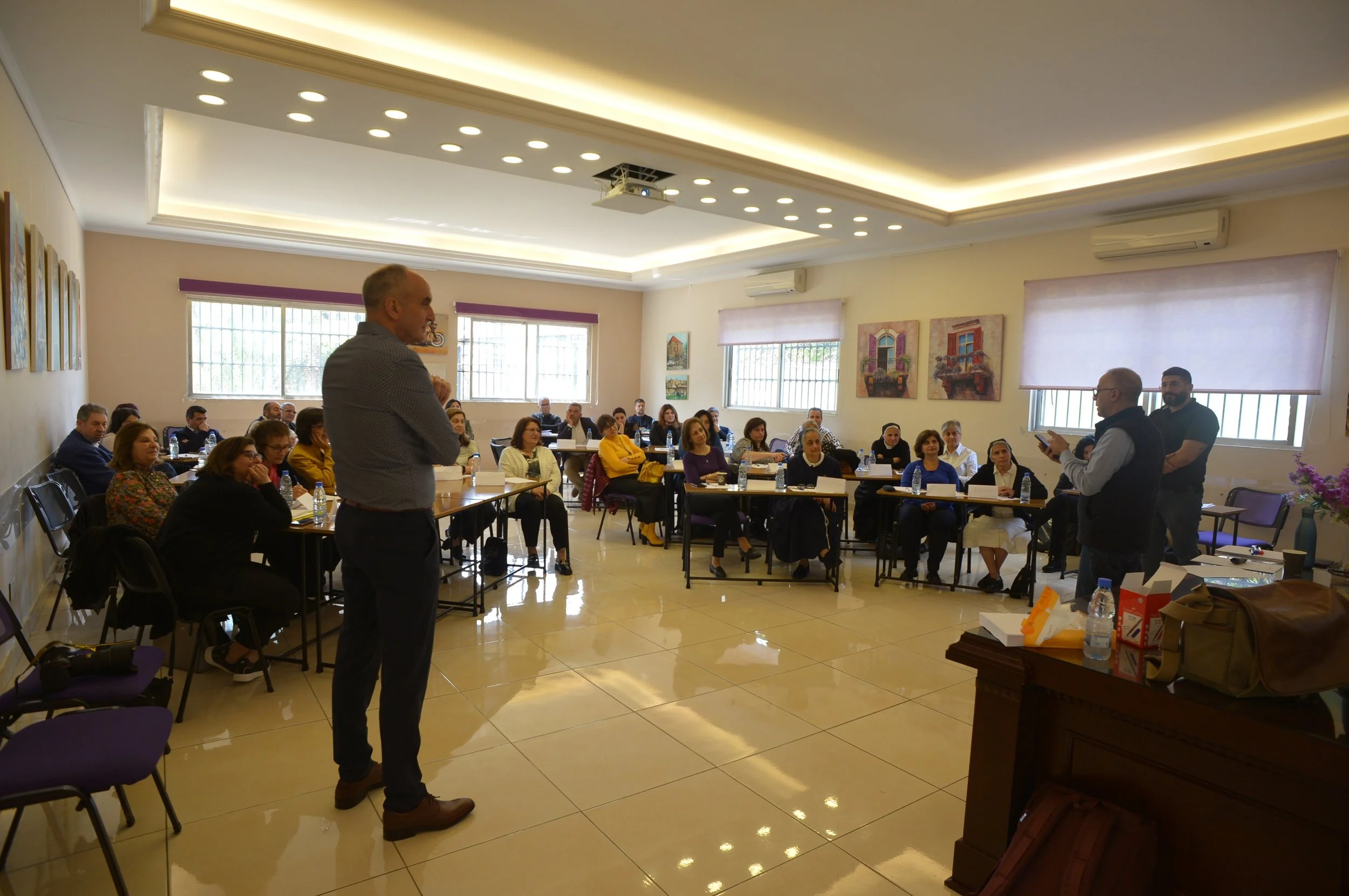 Hence, the Theological and Ecumenical Department held a follow-up workshop to the previous sessions of the “Spiritual and Psychological Support” program, in cooperation with the Tearfund organization. Attendees were 37 participants who had passed one of the sessions of this program. The workshop took place on Thursday 11 April 2024, at the Sisters of the Two Sacred Hearts High School in Sed El Bouchrieh, Lebanon.