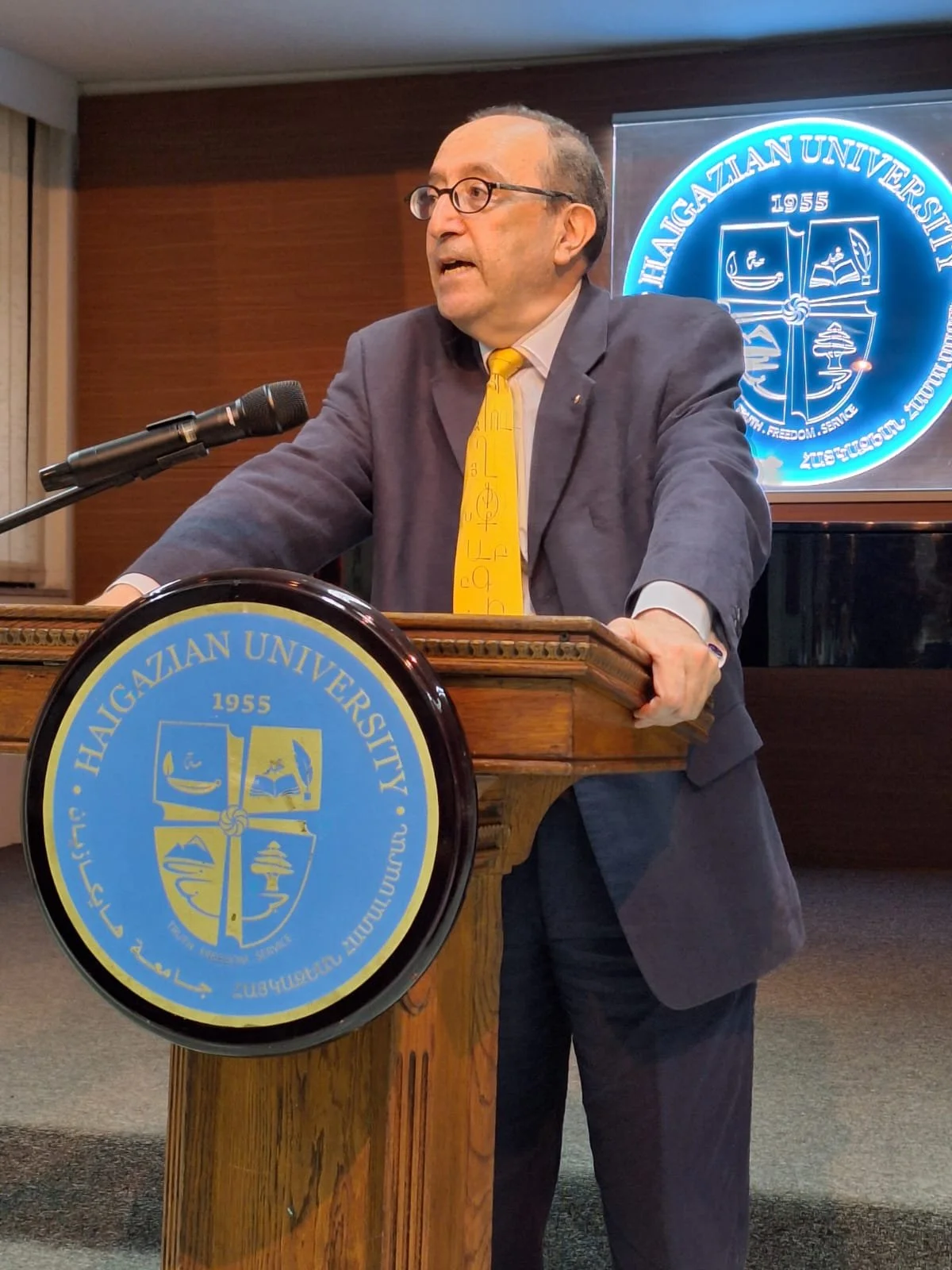 The Armenian Diaspora Research Center cordially organized a lecture entitled “The Armenian Community in Palestine, Historical & Contemporary Challenges”, which was delivered by Dr. Harry Hagopian, Public International Lawyer of UK and Ireland, in the presence of Reverend Dr. Paul Haidostian, President of the Union of the Armenian Evangelical Churches in the Near East, President of Haigazian University in Lebanon, and President of the Middle East Council of Churches for the Evangelical Family. It was held on Tuesday 25 June 2024, at the Haigazian University in Lebanon.