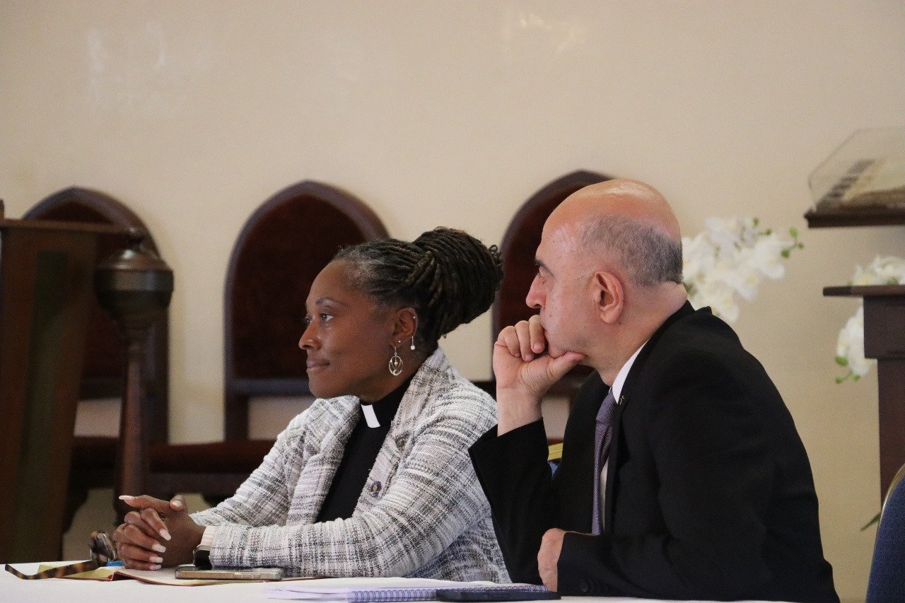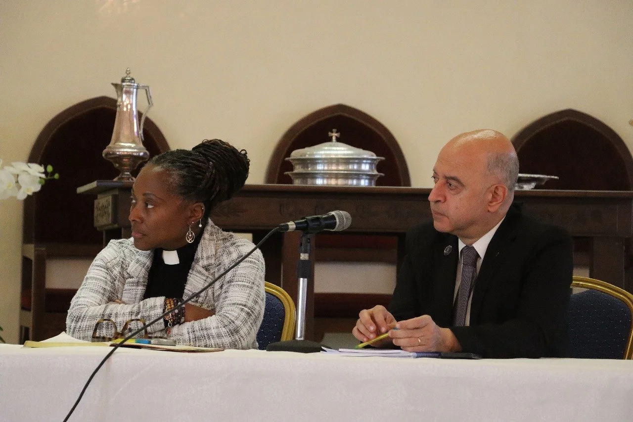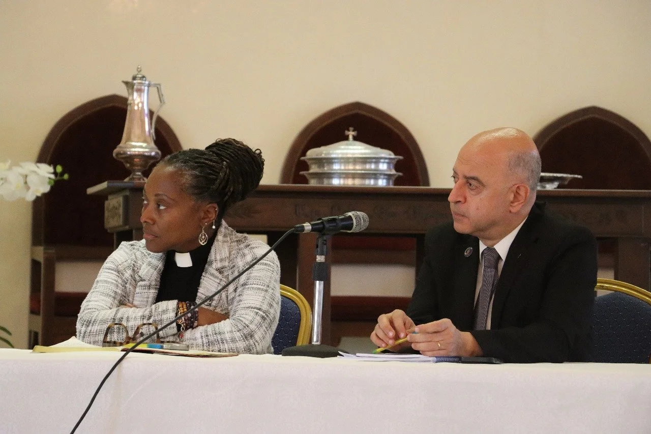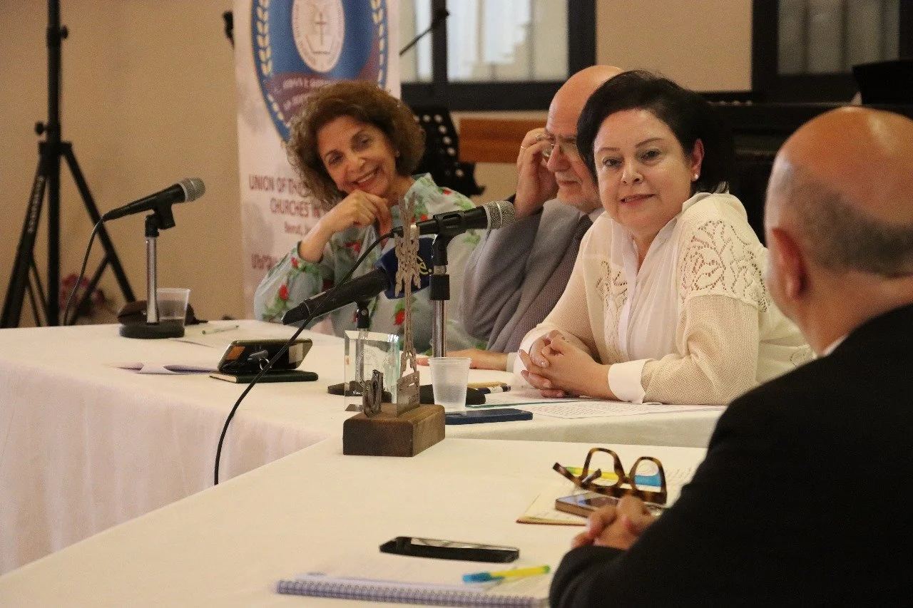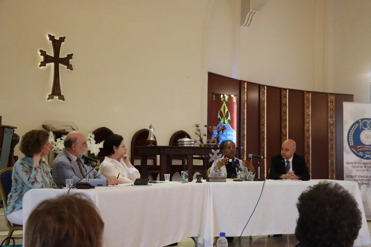The seminar was moderated by Reverend Dr. Paul Haidostian, President of the Union of Armenian Evangelical Churches in the Near East (UAECNE), and President of the Middle East Council of Churches (MECC) for the Evangelical Family. Speakers were the President of the United Church of Christ (UCC) in the United States of America Reverend Dr. Karen Georgia Thompson, the General Secretary of the Middle East Council of Churches (MECC) Dr. Michel Abs, the President of the World Communion of Reformed Churches (WCRC) Reverend Najla Kassab, and the Secretary General of the Fellowship of Middle East Evangelical Churches Mrs. Rosangela Jarjour.