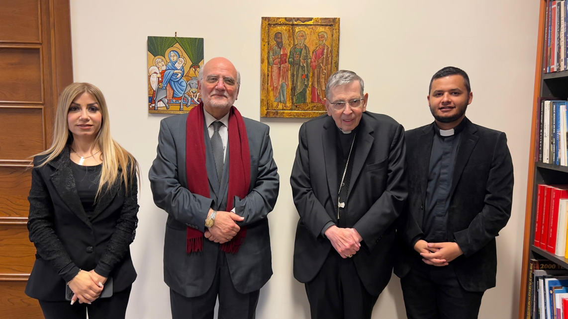 The participation of the Secretary General of the Middle East Council of Churches (MECC) Professor Michel Abs, in the Canonization Ceremony of Archbishop Ignatius Maloyan, included a series of meetings with Cardinals and Priests at the Vatican. Professor Abs met with Cardinal Kurt Koch, Prefect of the Dicastery for Promoting Christian Unity in the Vatican. Attendees were also the Coordinator of Media and Church Relations at MECC Lea Adel Maamary, and the Assistant in the MECC Media Department Subdeacon Chady Chata.