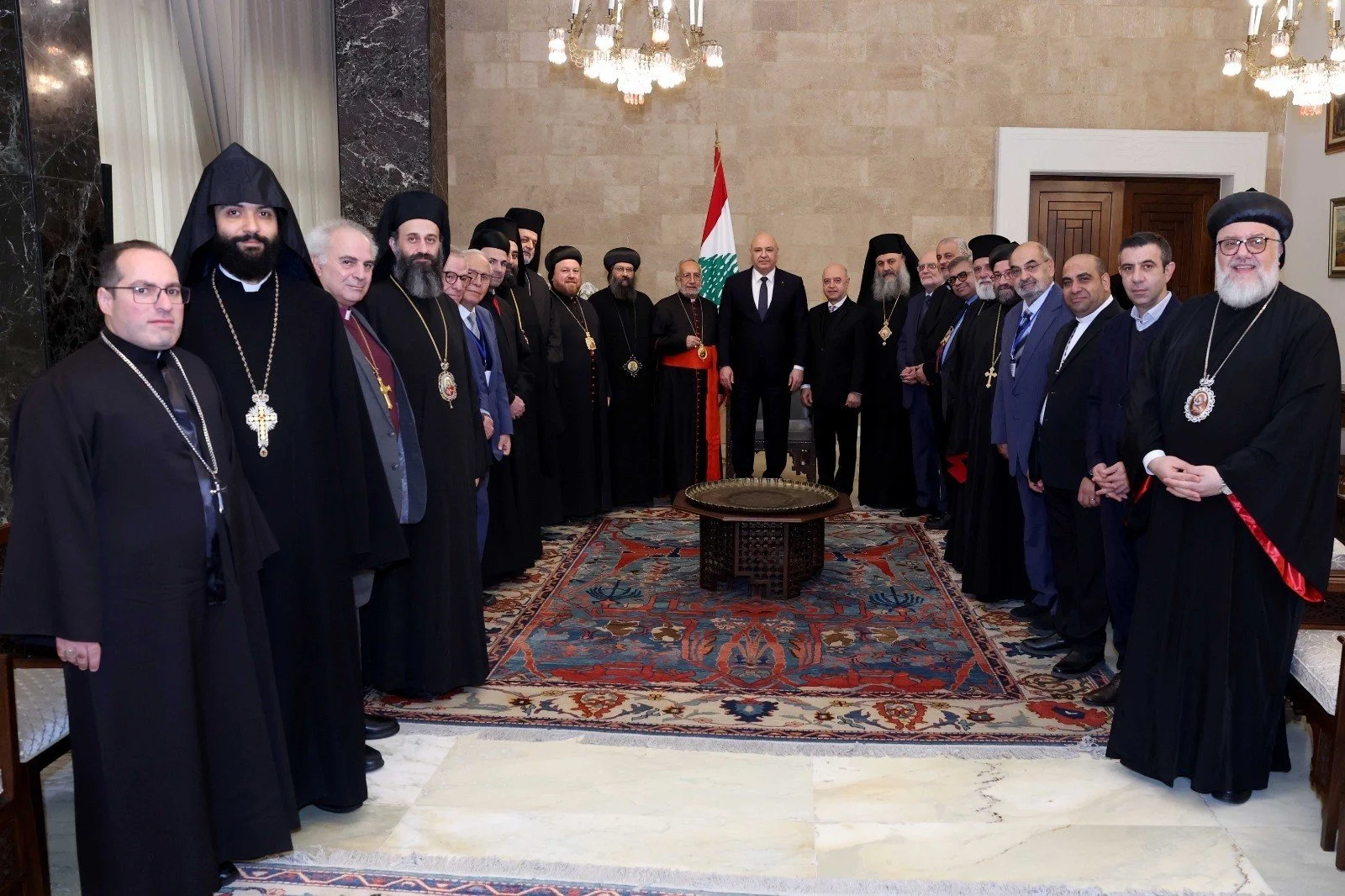 Members of the Executive Committee paid a visit to His Excellency the President of the Lebanese Republic, General Joseph Aoun, during which they discussed a number of issues, most notably the Christian presence in the region and the role of the Middle East Council of Churches in strengthening this presence both ecclesially and socially, consolidating the foundations of dialogue, and safeguarding human dignity in this suffering and afflicted East. They expressed appreciation for the pioneering role undertaken by His Excellency at the head of the Lebanese state, and praised the historic visit of His Holiness Pope Leo XIV to Lebanon, with its various stops and the important meanings it carried, affirming the deep-rooted presence of Christians in Lebanon and the region, the concept of living together, and the strengthening of stability. They also commended the joint efforts of the state and the Church in preparing for this visit, which took place at the highest levels and highlighted Lebanon’s exemplary image.