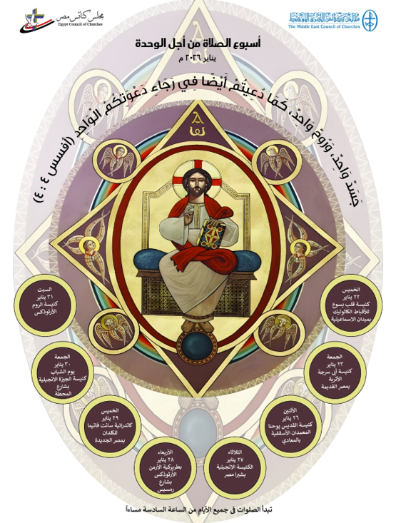 The Middle East Council of Churches, in cooperation with the Egyptian Council of Churches, organizes the Week of Prayer for Christian Unity – Egypt 2026, under the auspices of the Churches in Egypt.