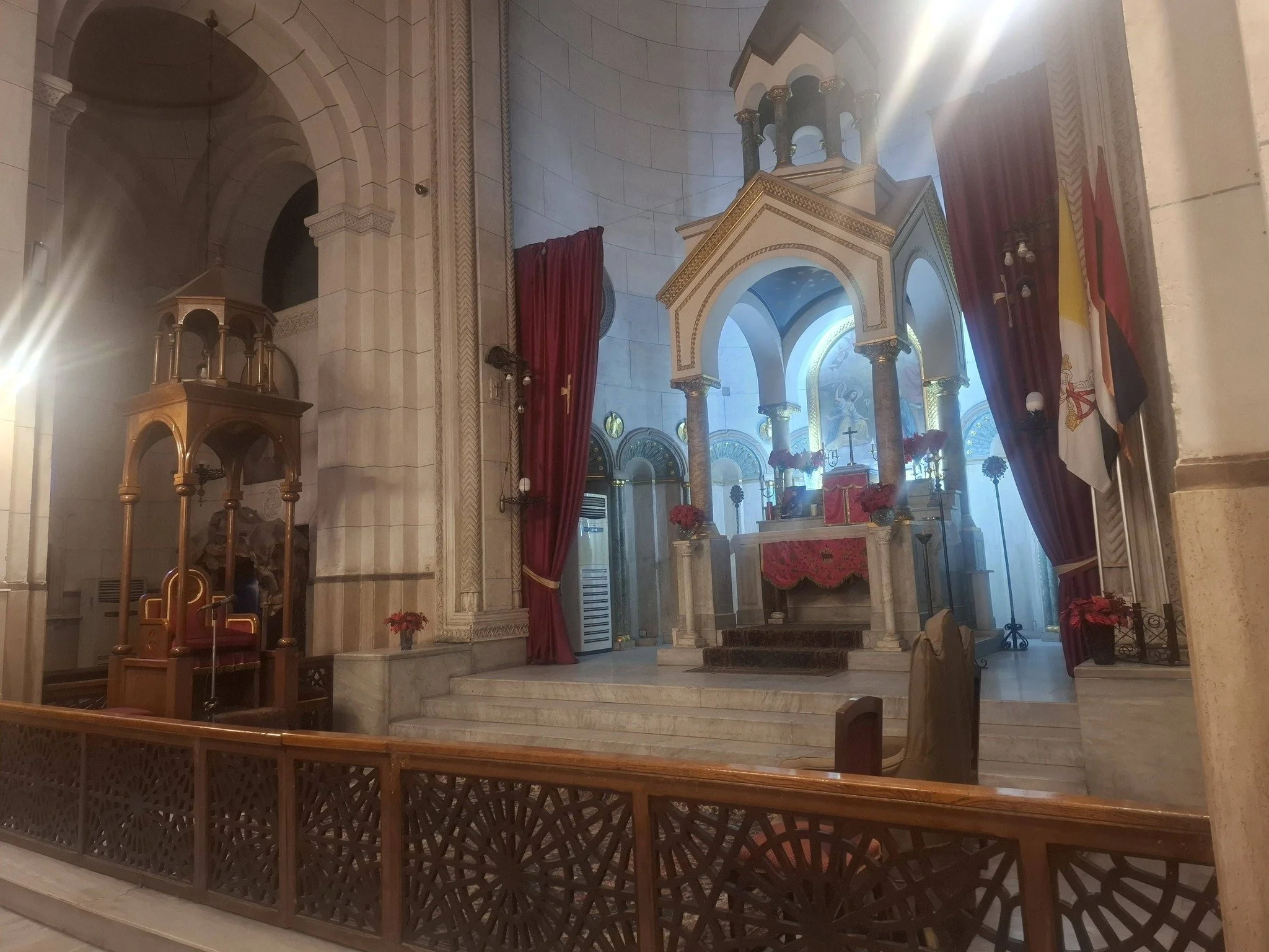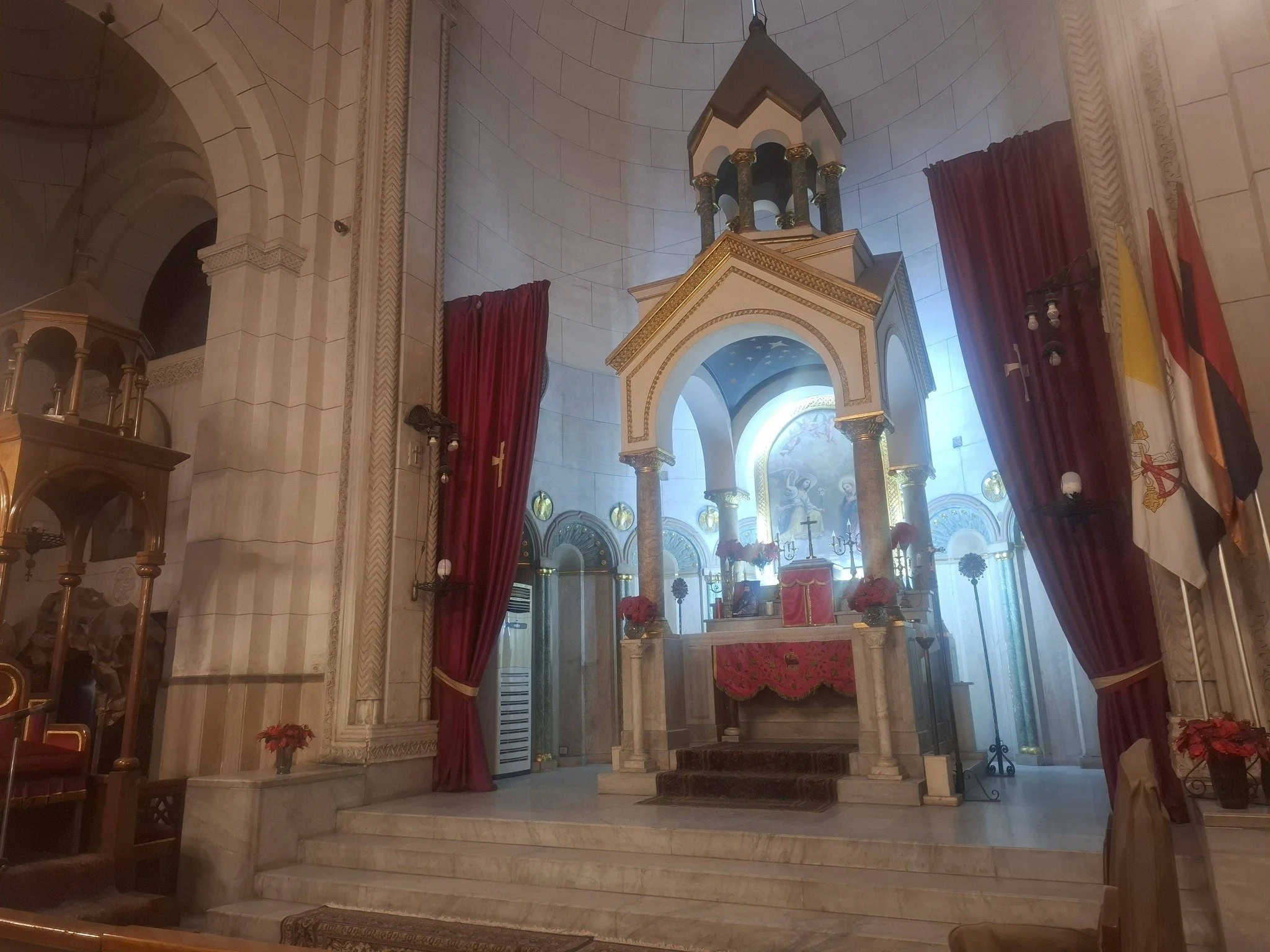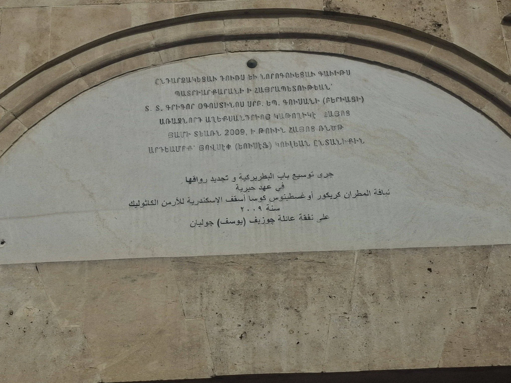 Afterwards, everyone entered the Cathedral of the Annunciation and recited the Lord's Prayer in both Arabic and Armenian. His Emincne offered to the Secretary General a collection of books bearing the name of Saint Ignatius Maloyan, a Church calendar, publications about the Armenian Genocide, and a large plaque bearing the name and image of Saint Maloyan.