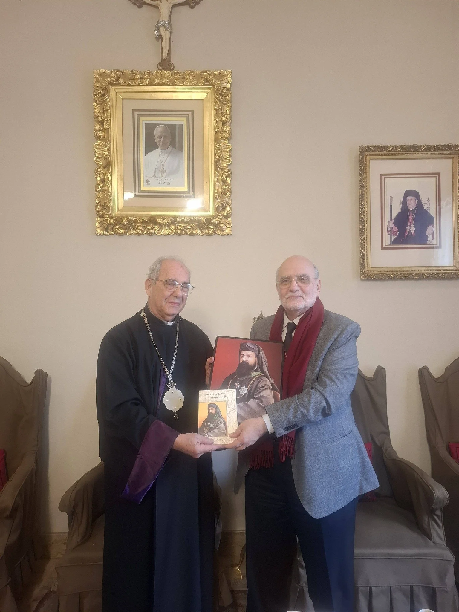 The Armenian Catholic Bishop of Alexandria Bishop Krikor Augustinos Koussa Receives the MECC Secretary General Professor Michel Abs at the Armenian Catholic Patriarchate_ Cairo