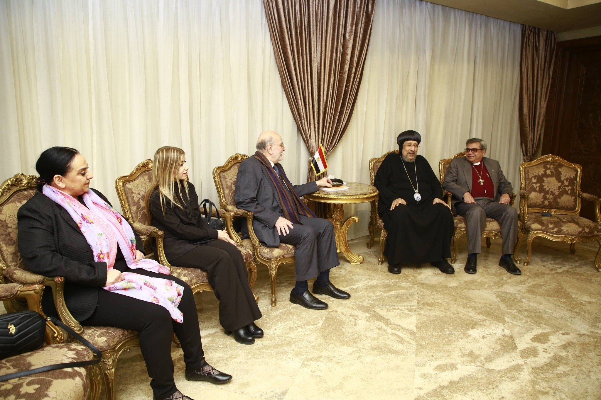 His Grace Bishop Anba Ermia, General Bishop and Head of the Coptic Orthodox Cultural Center, received the Secretary General of the Middle East Council of Churches (MECC) Professor Michel Abs and a delegation from the Council in Cairo, in the presence of Mr. Mina Sleiman, a Researcher at the Coptic Cultural Center.