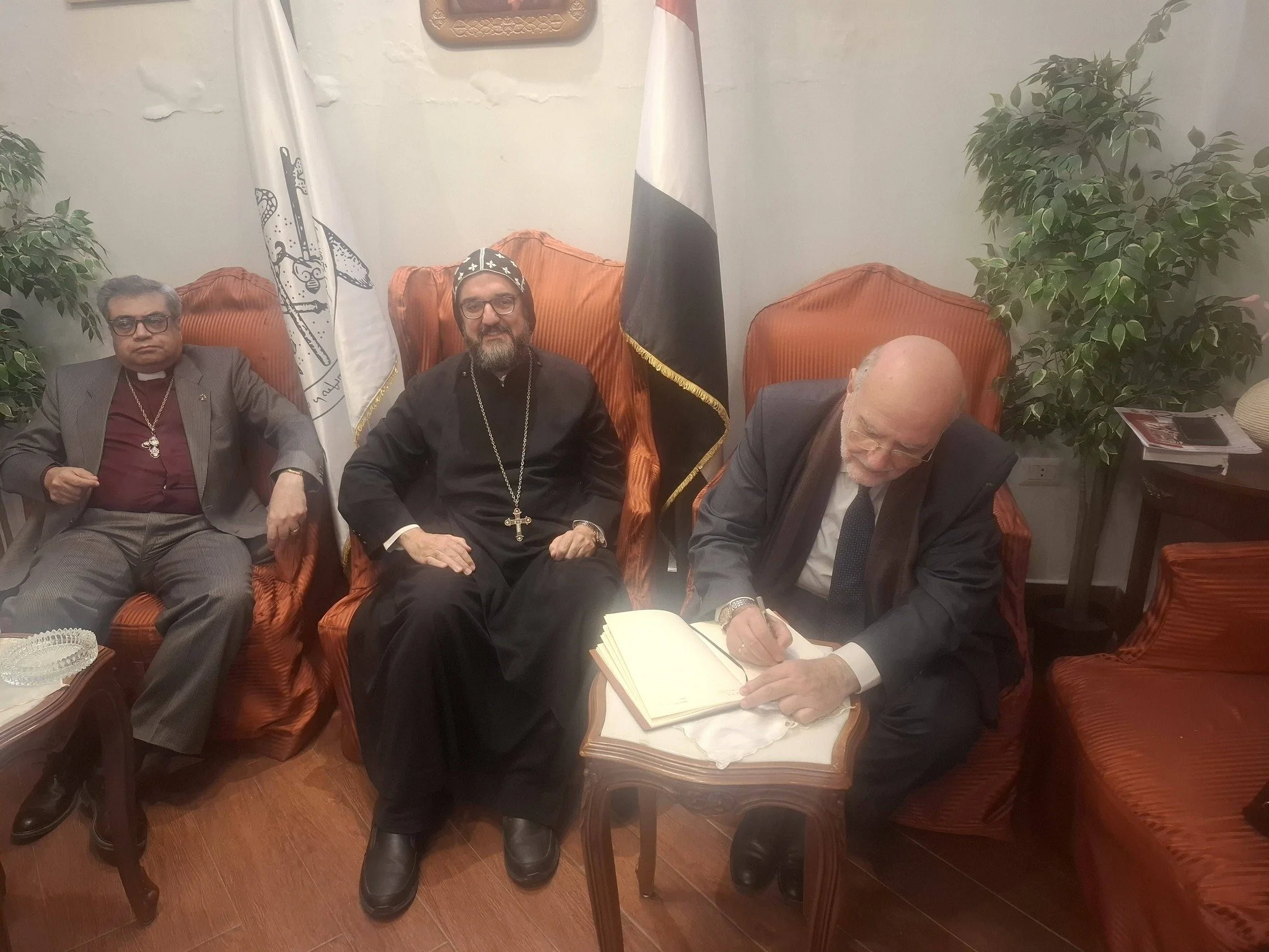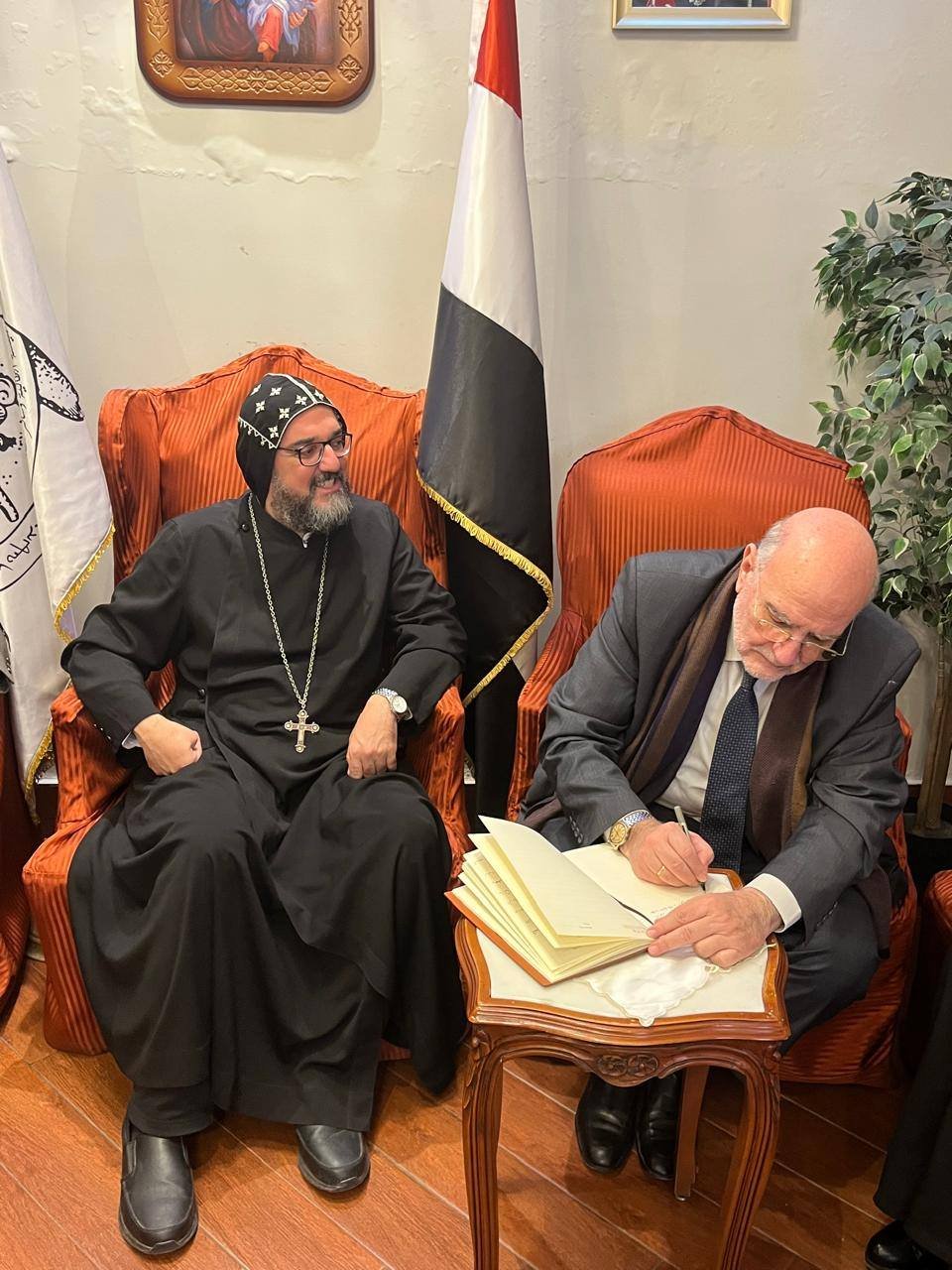 At the end of the meeting, Professor Michel Abs wrote a message in the guestbook expressing his affection for the Syriac Church and his visit to the Syriac Orthodox Church of the Virgin Mary in Cairo, Egypt.