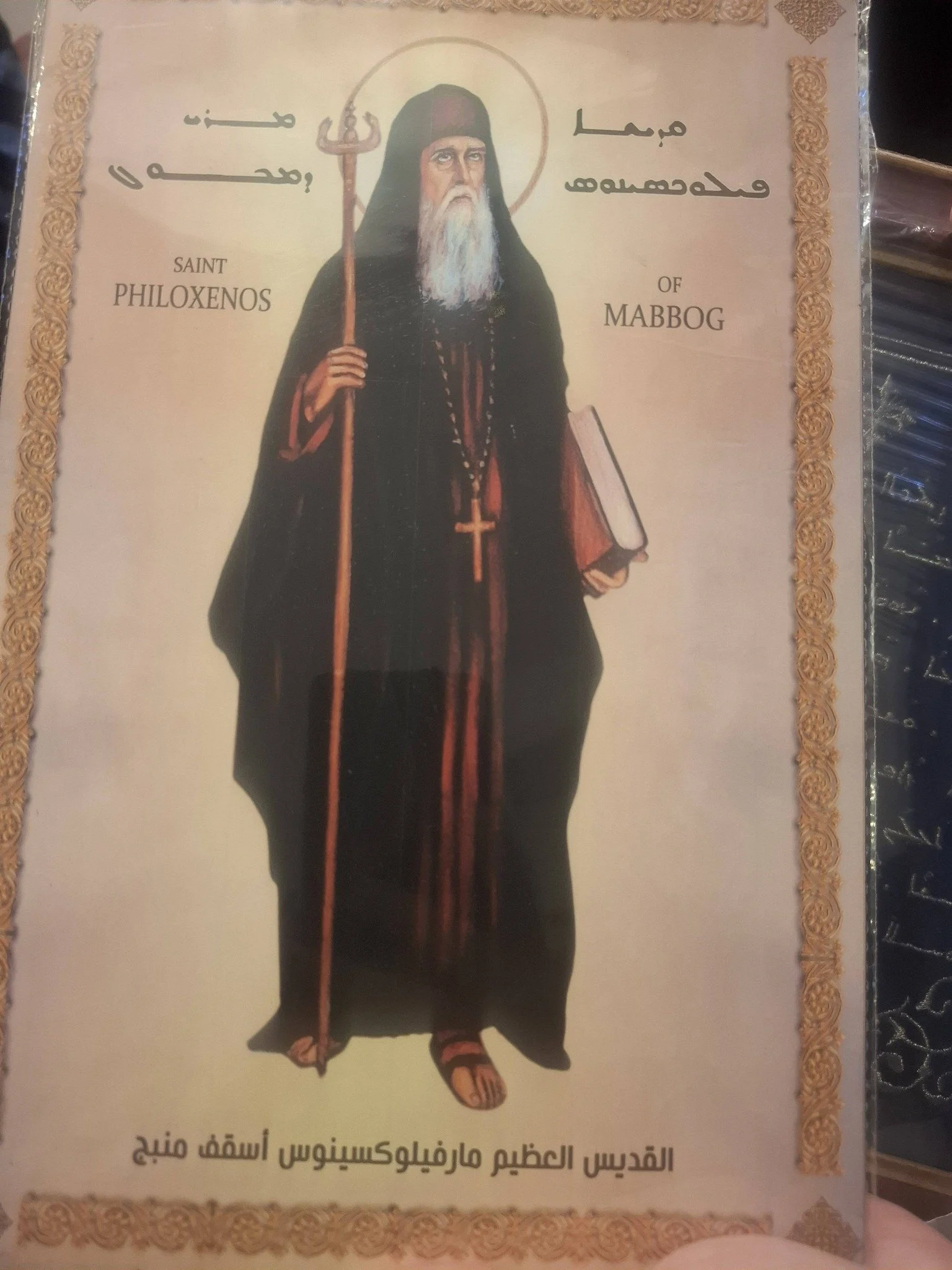 Father Rabban Philip also presented a plaque inscribed with the Lord's Prayer and embroidered on fabric, as well as an icon of the great Saint Philoxenus Bishop of Mabbug, as a token of love and appreciation.