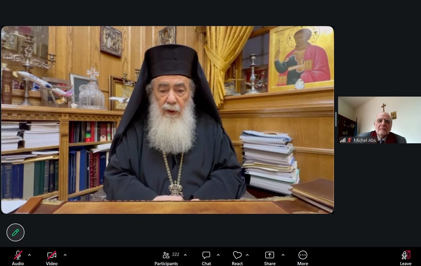The opening blessing was given by His Beatitude Patriarch Theophilos III, who also prayed during the meeting for the Holy Land, its protection from disasters and wars, and for God’s mercy.