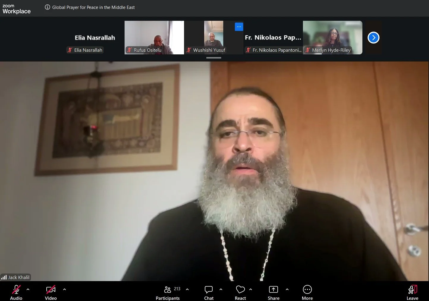 During the encounter, participants lit candles from their respective locations and raised Prayers with hearts full of hope for peace, truth and justice in the Middle East and the world. The meeting also included reflections, readings, Psalms, and hymns from different Church Traditions. A text from the Gospel was also read by Archimandrite Jack Khalil, Dean of the Saint John of Damascus Institute of Theology at the University of Balamand, Lebanon.