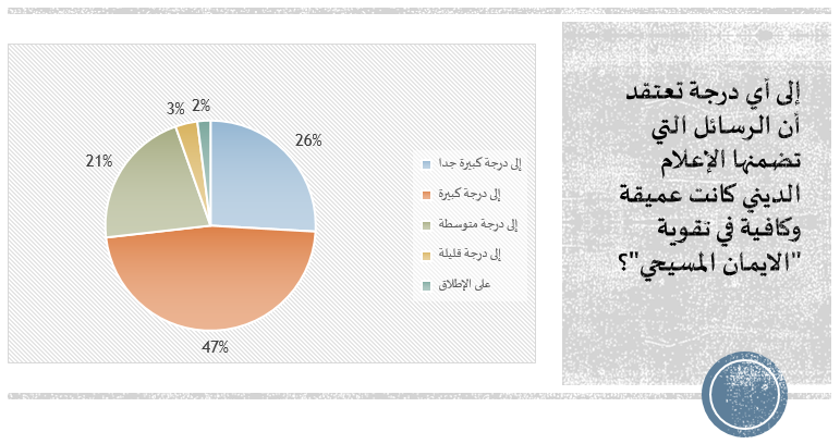 في هذا الإطار، عرض الأب رفعت بدر دراسة قام بها المركز الكاثوليكي للإعلام و"موقع أبونا" في شهري أيّار/ مايو وحزيران/ يونيو 2020، تحت عنوان "الإعلام المسيحي في خدمة الإيمان أثناء أزمة كورونا"، من خلال استبيان وُجّه إلى المتابعين على مواقع التواصل الإجتماعي. إذْ، شارك فيه حوالي 5 آلاف شخص، من بينهم 65% سيّدات و35% رجال من كلّ الفئات العمريّة. ووفق نتائج الدراسة نستنتج وجود عدد ملحوظ من الشباب الّذين يتابعون المواد الدينيّة؛ وهذا يشكّل، بحسب الأب بدر، مؤشّرًا إيجابيًا أن الرسالة تصل إلى الشباب الذين لا يرضيهم شيء في غالبيّة الأوقات.
