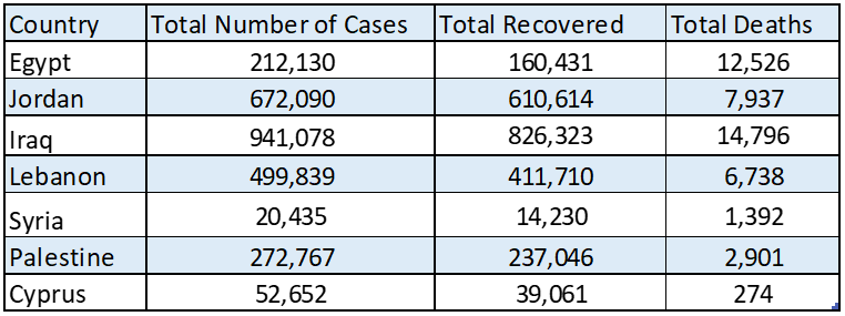 مستجدّات فيروس كورونا كوفيد-19 في الشرق الأوسط