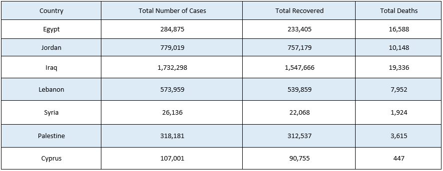 مستجدّات فيروس كورونا كوفيد-19 في الشرق الأوسط