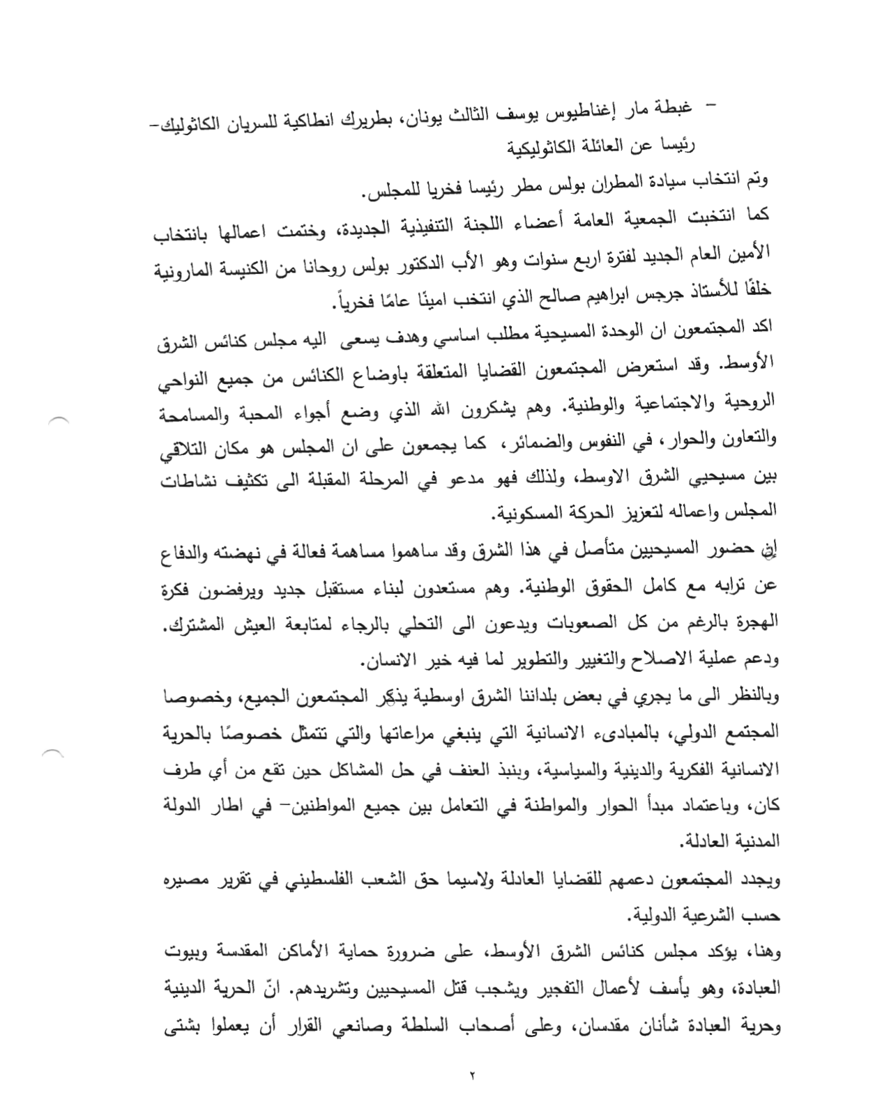 من ذاكرة مجلس كنائس الشرق الأوسط: ما هي الرسائل والتوصيات الّتي حملها البيان الختاميّ للجمعيّة العامة الـ10 للمجلس؟