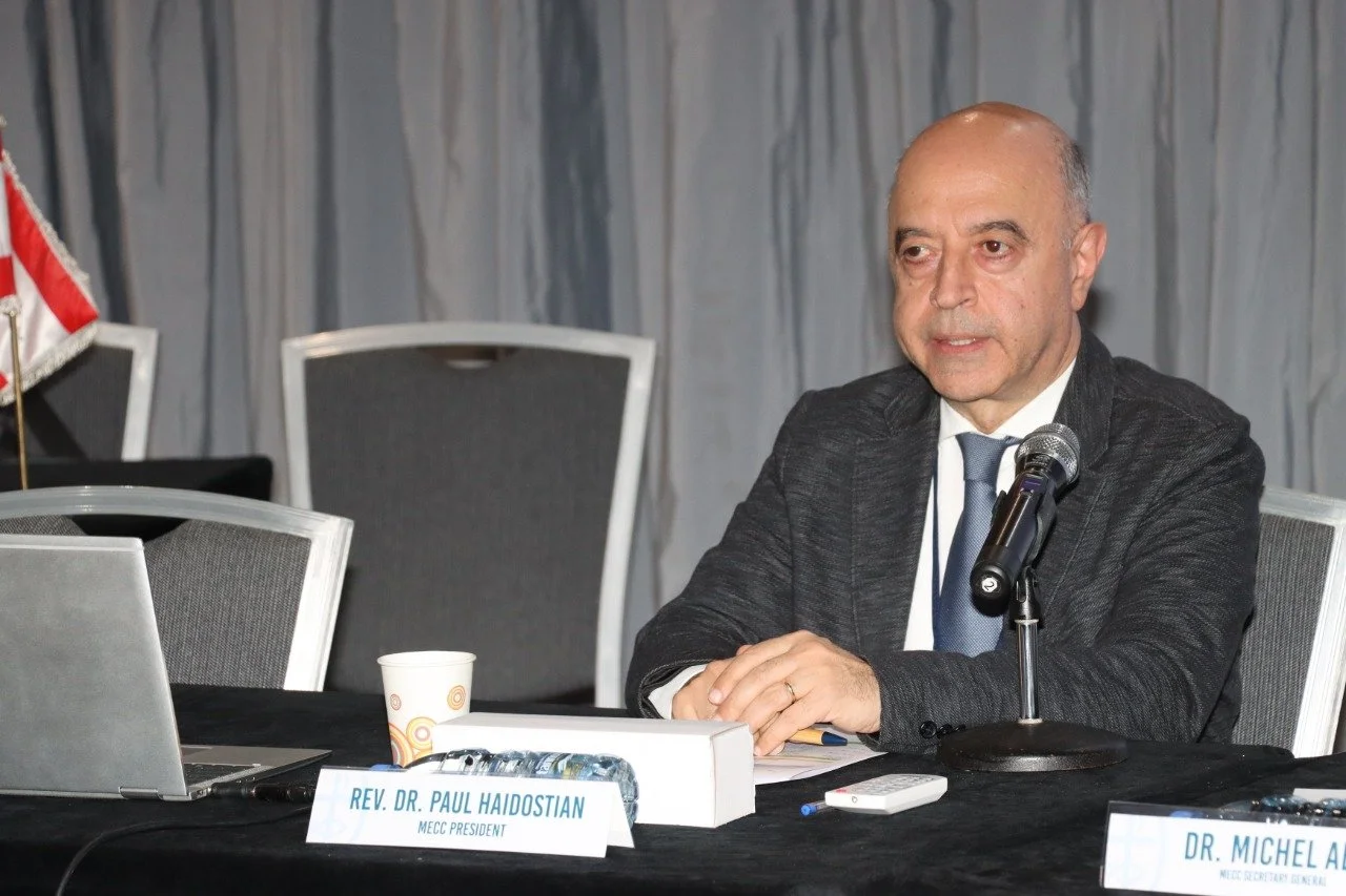 أمّا الجلسة الأخيرة فأدارها القسّ د. بول هايدوستيان، رئيس مجلس كنائس الشرق الأوسط عن العائلة الإنجيليّة، رئيس إتّحاد الكنائس الإنجيليّة الأرمنيّة في الشرق الأدنى، ورئيس جامعة هايغازيان في لبنان، حيث تمحورت حول مرافقة مجلس كنائس الشرق الأوسط مسكونيًّا وتطوير آفاق عمله نحو تعزيز لدوره ومهامه في المنطقة.