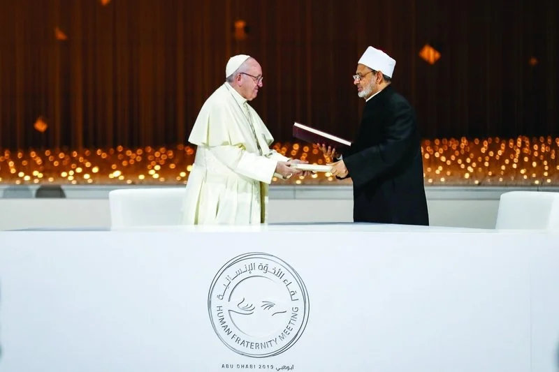 إحدى هذه المبادرات شهدها العالم في هذا التاريخ مع توقيع "وثيقة الأخوّة الإنسانيّة من أجل السّلام العالميّ والعيش المشترك". مبادرة تاريخية وقّعها قداسة البابا فرنسيس وسماحة شيخ الأزهر الإمام الأكبر أحمد الطيِّب في أبو ظبي؛ لتكون وفق مقدّمة الوثيقة "إعلانًا مُشتَركًا عن نَوايا صالحةٍ وصادقةٍ من أجل دعوةِ كُلِّ مَن يَحمِلُونَ في قُلوبِهم إيمانًا باللهِ وإيمانًا بالأُخُوَّةِ الإنسانيَّةِ أن يَتَوحَّدُوا ويَعمَلُوا معًا من أجلِ أن تُصبِحَ هذه الوثيقةُ دليلًا للأجيالِ القادِمةِ، يَأخُذُهم إلى ثقافةِ الاحترامِ المُتبادَلِ...".