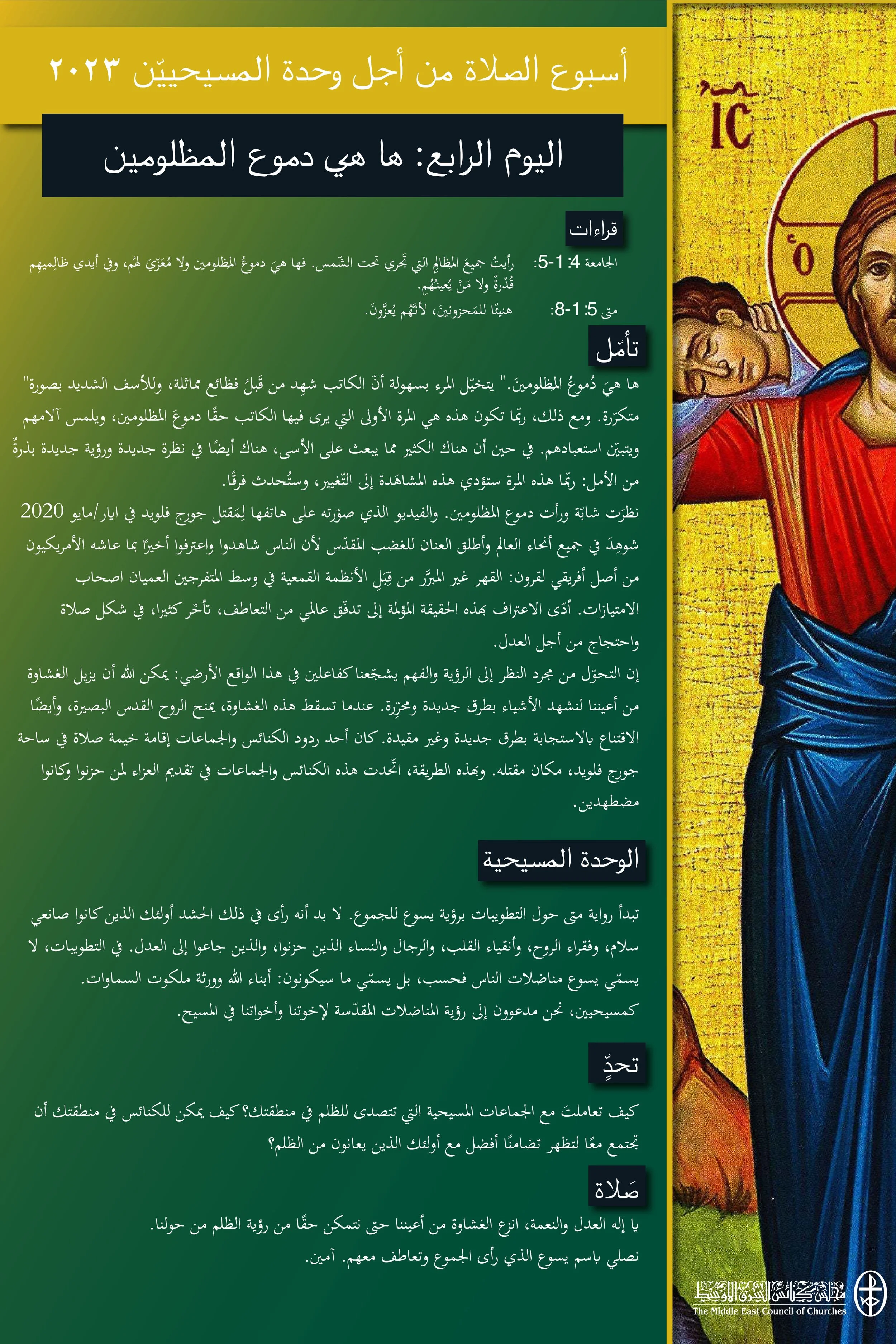 في التالي صلاة اليوم الرابع من "أسبوع الصّلاة من أجل وحدة المسيحيّين" 2023 والّتي وردت في الكتيّب الخاصّ حيث بإمكانكم نشرها وتوزيعها.