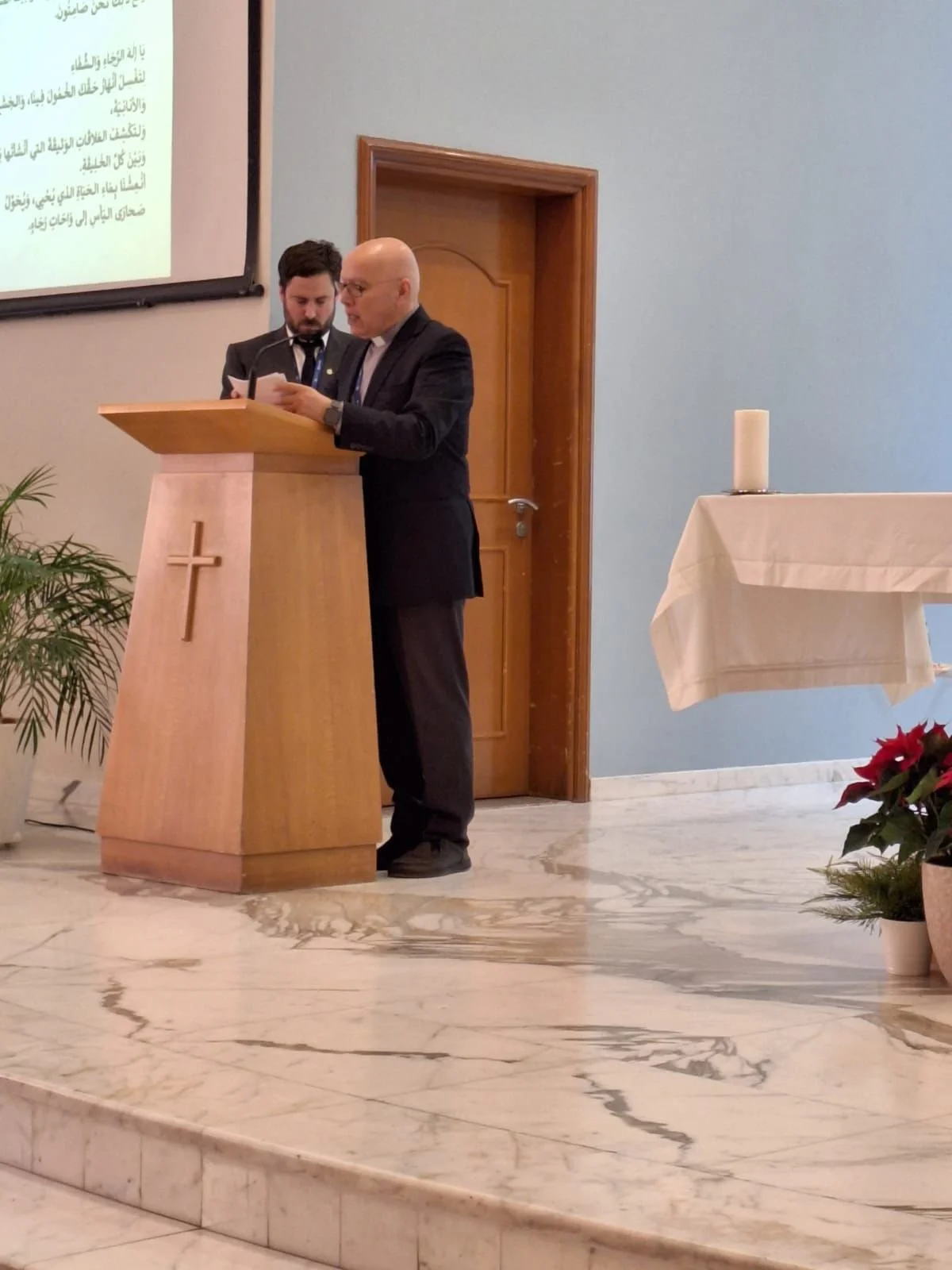 الأمين العام لمجلس كنائس الشرق الأوسط البروفسور الدكتور ميشال عبس ومدير دائرة الشؤون اللّاهوتيّة والعلاقات المسكونيّة الأب الدكتور أنطوان الأحمر