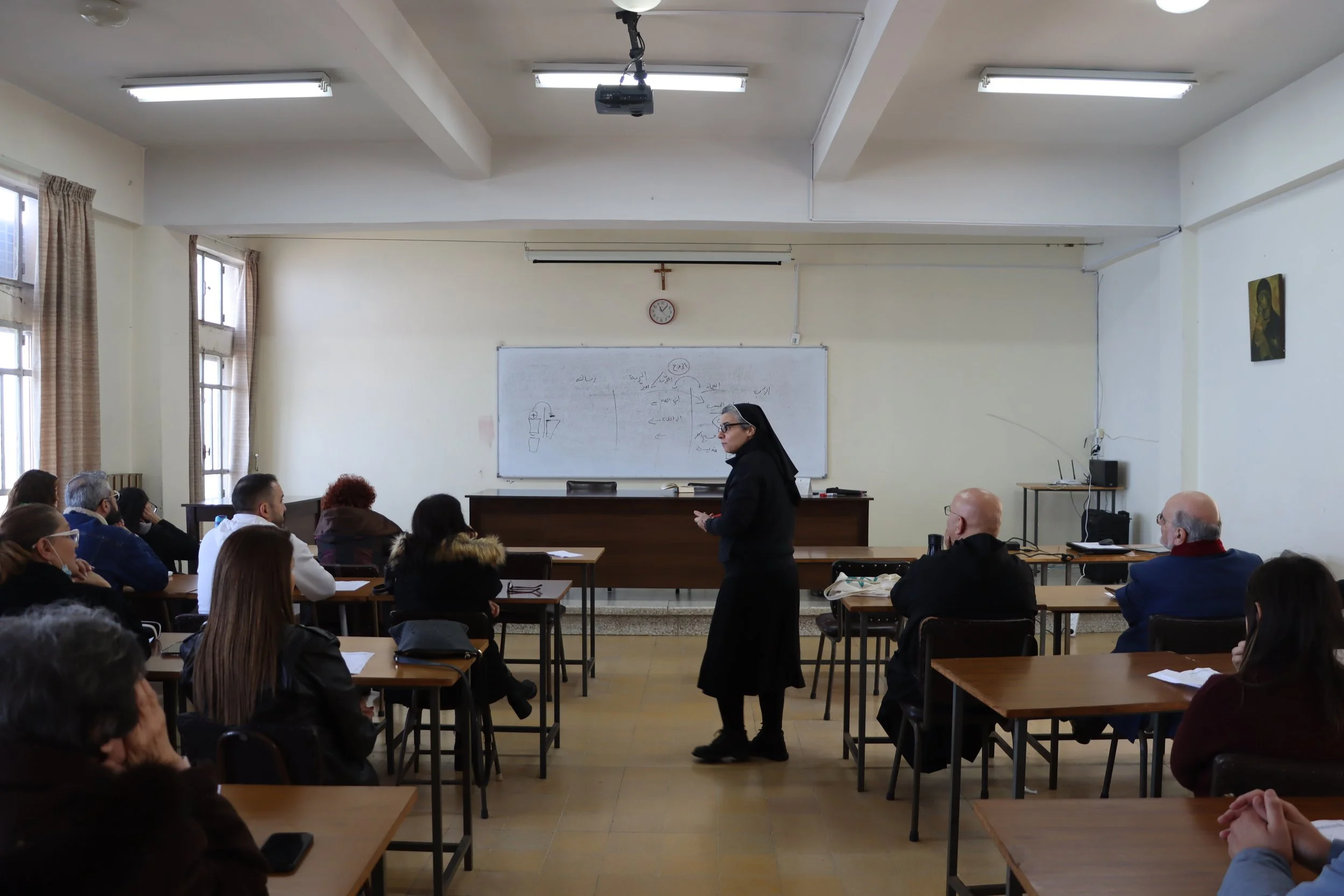 إلى ذلك، شارك فريق مجلس كنائس الشرق الأوسط في حديث روحيّ وحوار مع الأخت تريز السلوى، من راهبات مرسلات سيّدة المعونة الدائمة، تحت عنوان "الصّوم فرصة لعيش البنوّة"، انطلاقًا من تأمّل حول النصّ الإنجيليّ المتعلّق بتجارب يسوع المسيح في البريّة من إنجيل لوقا 4: 1-13. خلال الحديث، تحدّث الأخت تريز عن أهميّة الاتّكال على الربّ وتخطّي كلّ التجارب والتحدّيات بإيمان عميق ورجاء كبير. من ثم جرى نقاش للموضوع الذي طرحته الأخت تريز كما أجابت أيضًا على تساؤلات الزملاء الحاضرين.