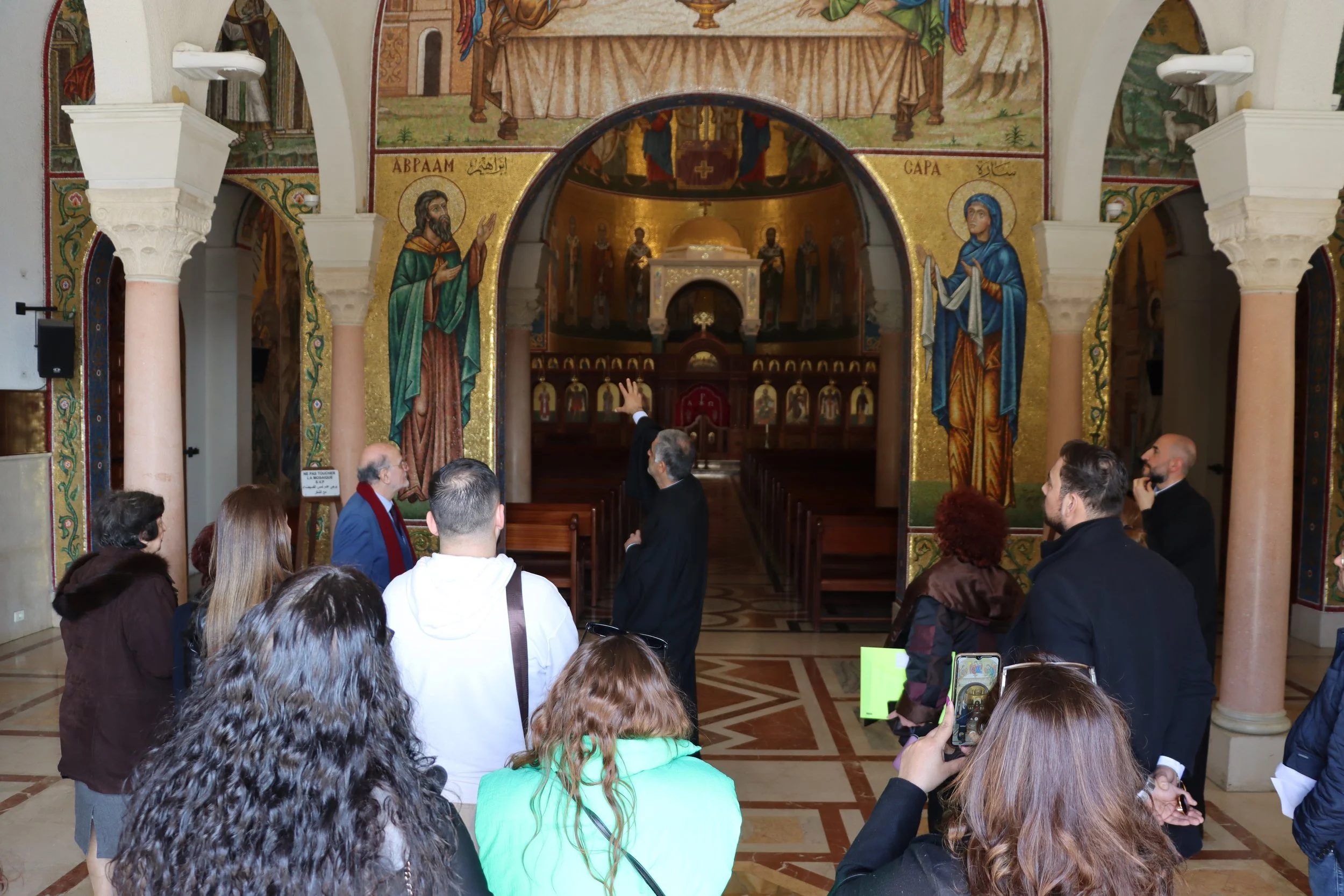 بعدها، التقى المشاركون مع الأب مروان سيدة، الرئيس العام لجمعيّة مرسلين القدّيس بولس، حيث رافقهم في زيارة موجّهة إلى بازيليك القدّيس بولس، مقدّمًا عرضًا مفصّلًا عن الكنيسة، أبرز المحطّات التاريخيّة الّتي شهدتها وكذلك مراحل بناؤها وهدف إنشاؤها الّذي يتجلّى في سبيل الصّلاة من أجل وحدة المسيحيّين. كما أوضح الأب مروان أنّ البازيليك تعبّر عن وحدة المسيحيّين عبر فسيفساء عدّة تمثّل مختلف العائلات الكنسيّة كانت قد رُفعت على جدرانها، شارحًا معاني باقي الفسيفساء الّتي ترمز إلى أهمّ الأحداث المسيحيّة وأيضًا بعض القدّيسين.