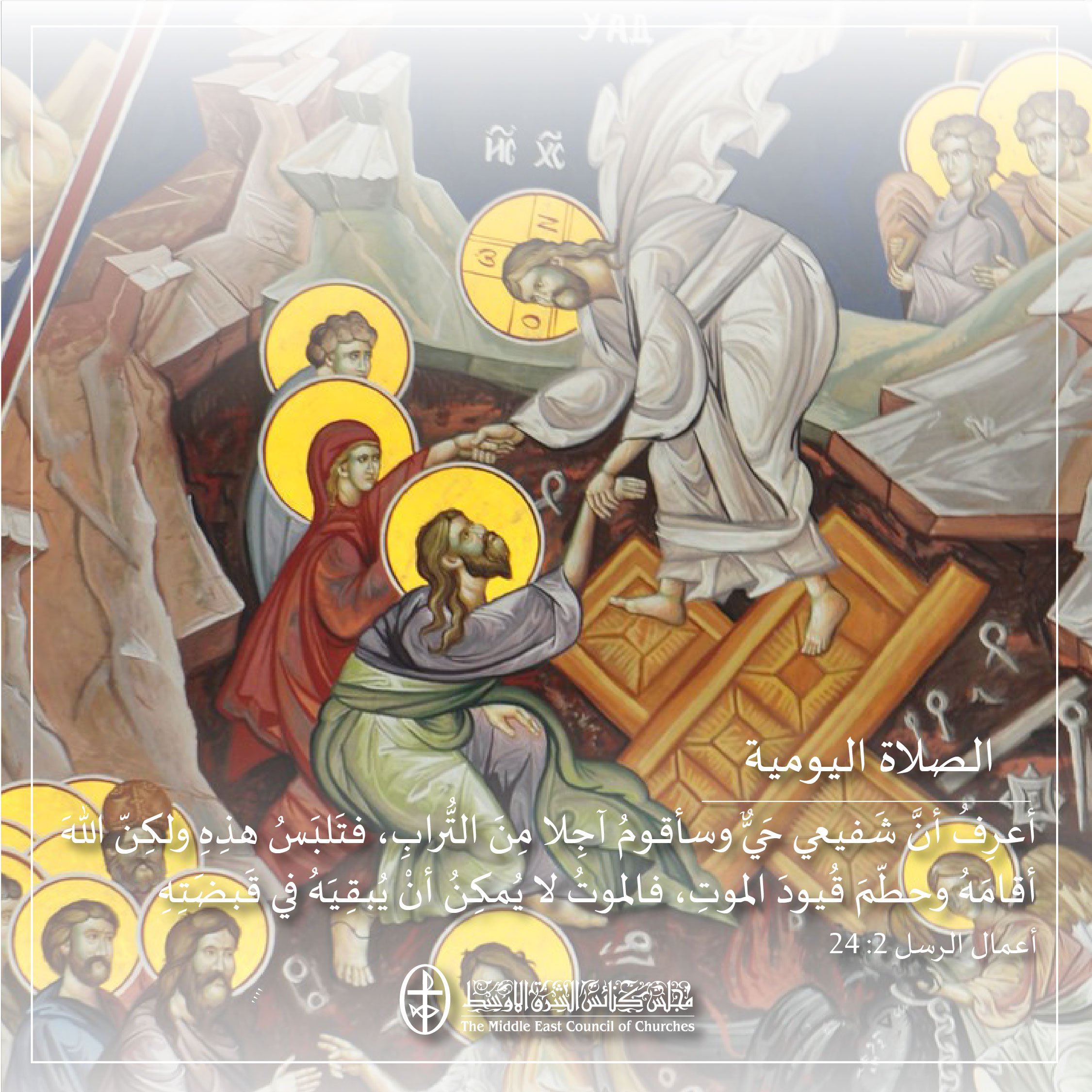 ولكِنّ اللهَ أقامَهُ وحطّمَ قُيودَ الموتِ، فالموتُ لا يُمكِنُ أنْ يُبقِـيَهُ في قَبضَتِهِ أعمال الرسل 2: 24