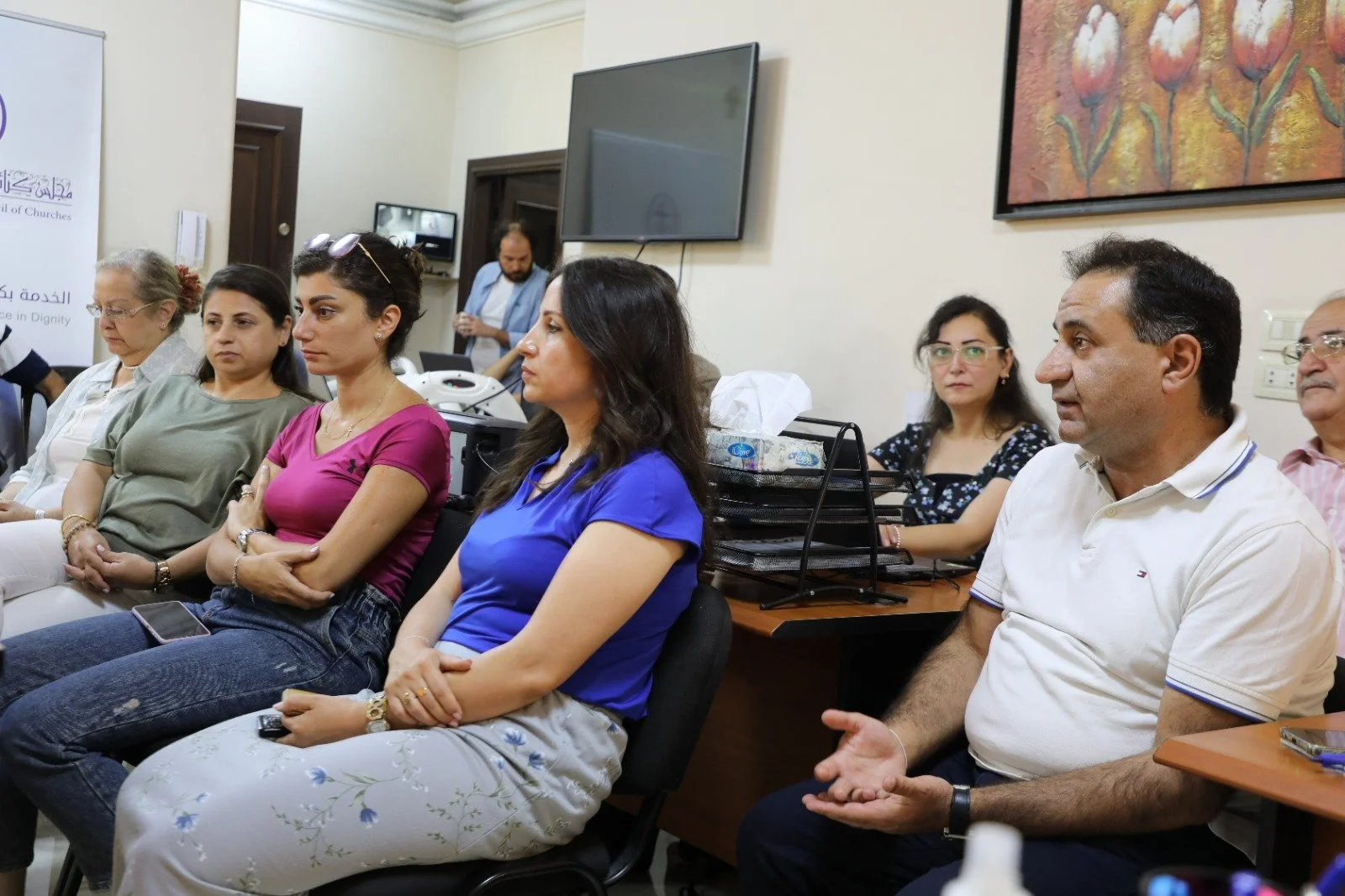 وأثنى د. عبس على الجهود التي يبذلها العاملون في مجلس كنائس الشرق الأوسط لإيصال الخدمات الإغاثية إلى مستحقيها، وتنفيذها بطريقة تعكس شعار المجلس "الخدمة بكرامة"، إذ أن لا شيء يعادل كرامة الإنسان، وهذا جزء من ثقافتنا كمسيحيين. وأوضح أن التمويل الذي يقدّمه شركاء مجلس كنائس الشرق الأوسط ناتج عن حسن أدائه في رصد حاجات المجتمعات وتنفيذ المشاريع على الأرض بفعالية وشفافية.