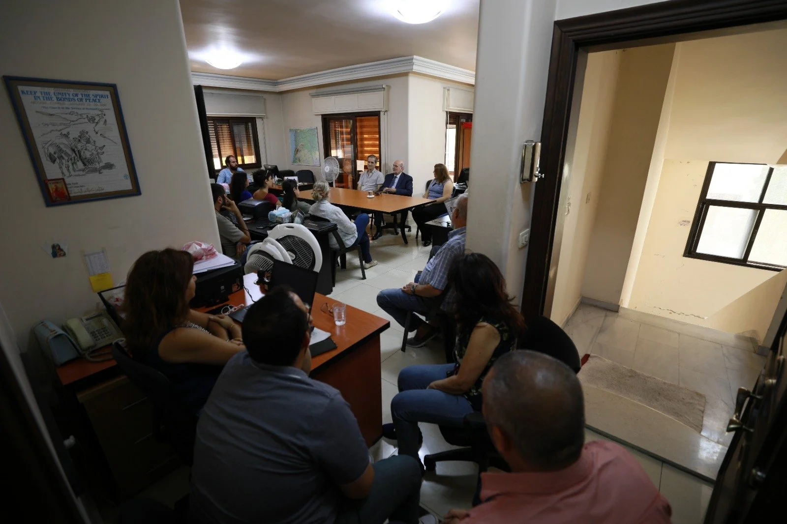 زار الأمين العام لمجلس كنائس الشرق الأوسط الدكتور ميشال عبس مكتب المجلس في دمشق، حيث كان في استقباله مدير برامج المجلس في سورية المهندس غسان شاهين والعاملين في مكتب المجلس، اليوم الاثنين 2 أيلول/ سبتمبر 2024.