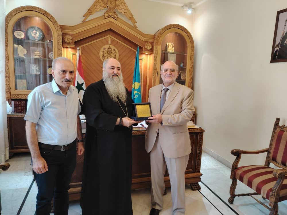 في ختام الزيارة، قدم المطران اشكاريان درعا تقديرية للأمين العام الدكتور ميشال عبس عربون محبة وتقدير.