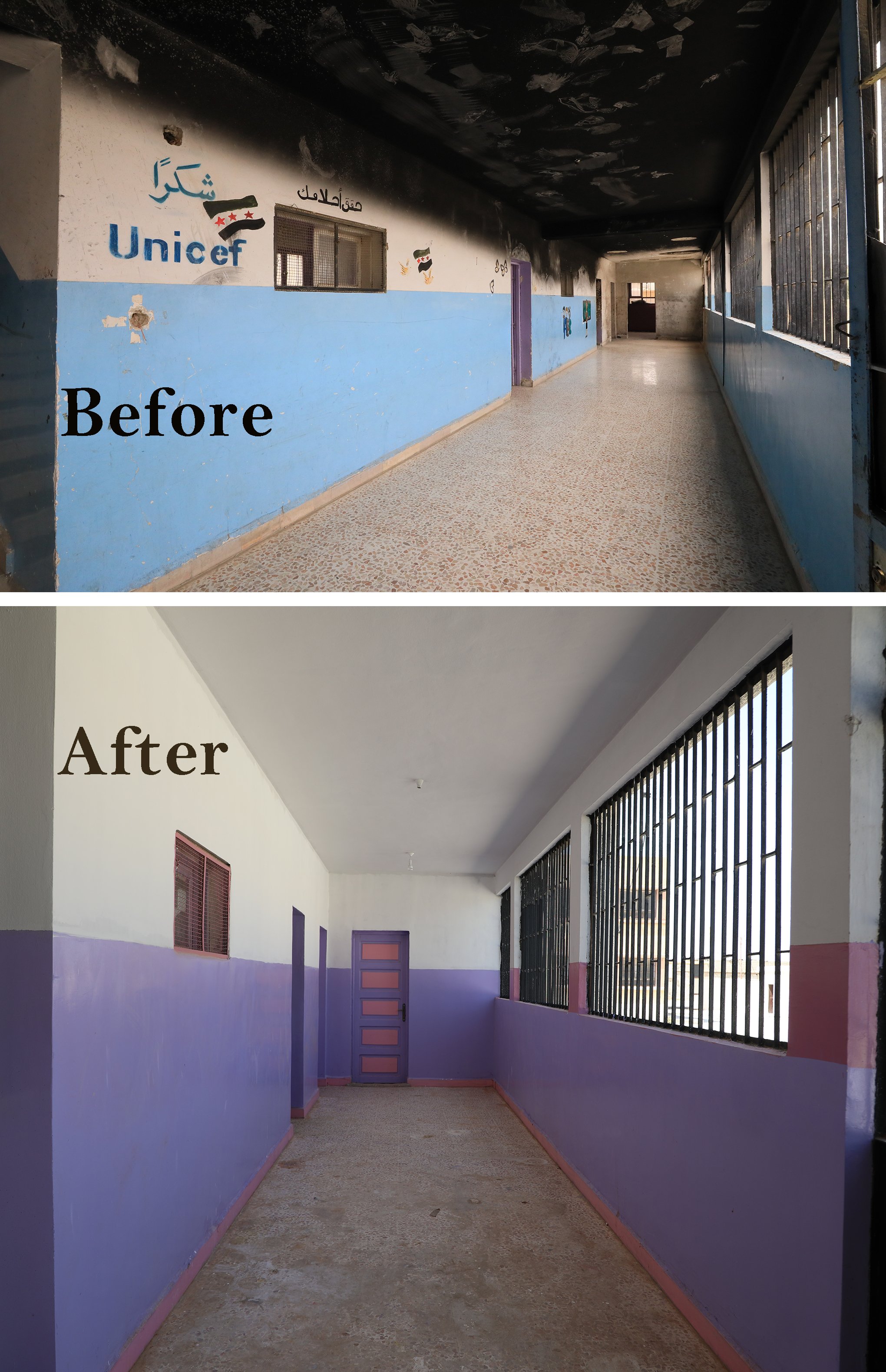 وأضافت "تمديدات المرافق الصحية كانت مهترئة ولا تقوم بالتصريف بشكل جيد، بالإضافة إلى قلّة المياه، الأمر الذي كان يتسبب في تراكم الأوساخ، وكانت الرائحة الكريهة تصل إلى الصفوف الدراسية. كلّ ذلك كان يؤثر سلباً على الطلاب والكادر التدريسي".