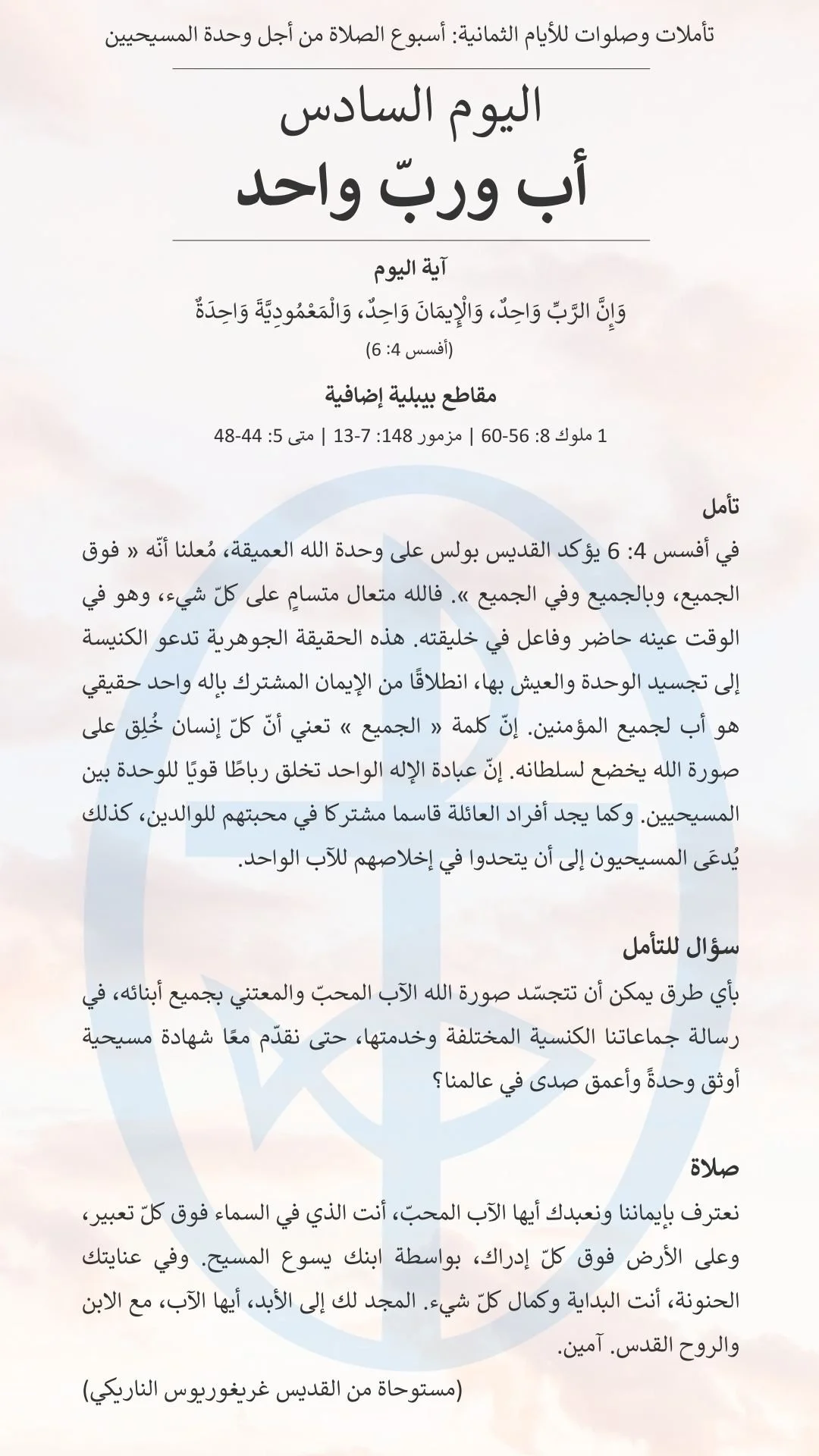 اليوم السادس من أسبوع الصلاة من أجل وحدة المسيحيّين 2026 Under the Spotlight-arCommunication-arTheological&Ecumenical-ar Jan 23 Written By Communication & PR Department Communication English كتيّب أسبوع الصلاة 2026: https://www.mecc.org/meccnewsar/2025/12/29/-2026-panak صلاة Communication & PR Department Communication