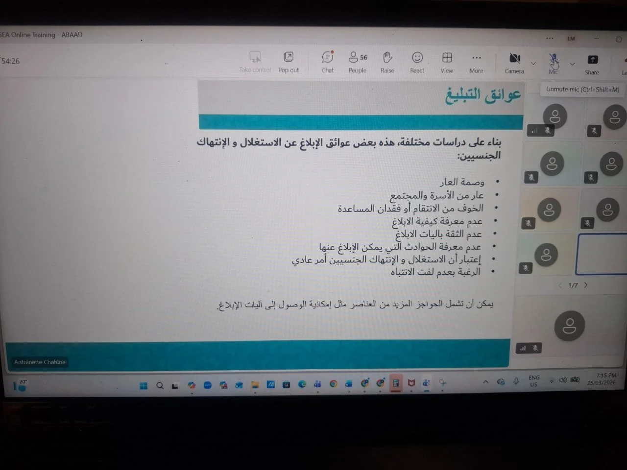 في إطار تطوير القدرات وتنمية المهارات، شارك كلّ من فريقي الإعلام ودائرة الدياكونيا، مكتب لبنان، في مجلس كنائس الشرق الأوسط، في دورة تدريبيّة عن بُعد، نظّمتها منظّمة أبعاد حول الحماية من الإستغلال والإنتهاك الجنسيّينن (PSEA)، وذلك بغية تعزيز بيئات العمل الآمنة والمساءلة الإنسانيّة.