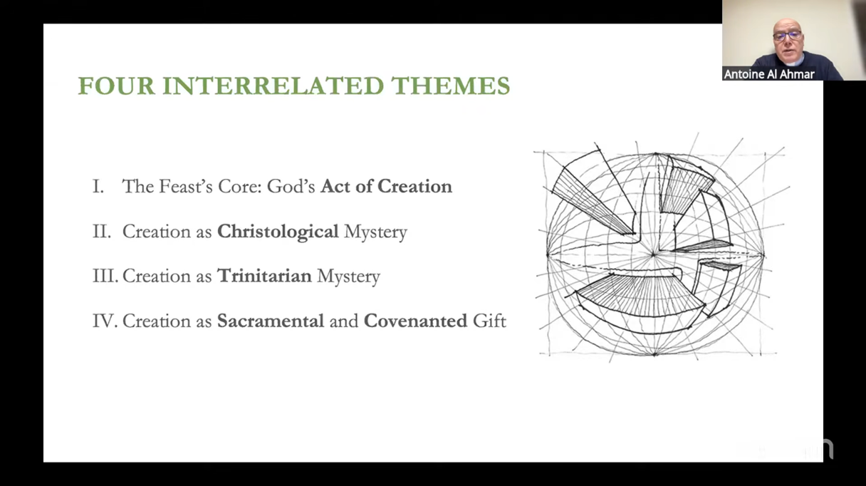 Four interrelated themes are celebrated on this holy day: “(1) God’s act of creation, (2) Creation as a Christological mystery, (3) Creation as a Trinitarian mystery, and (4) Creation as a sacramental and covenanted gift. Together, these themes help us appreciate the richness and depth of the mystery being celebrated.”